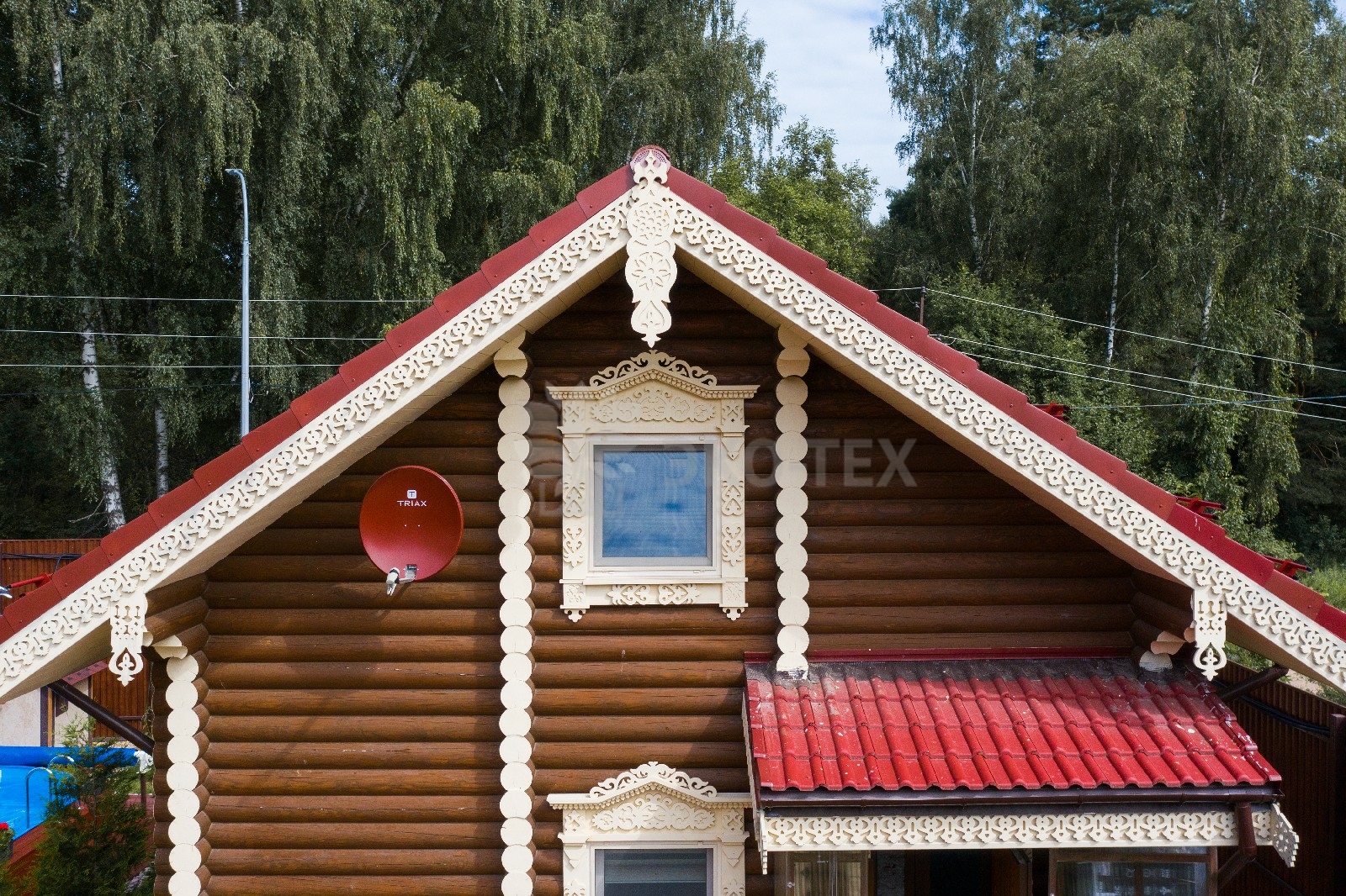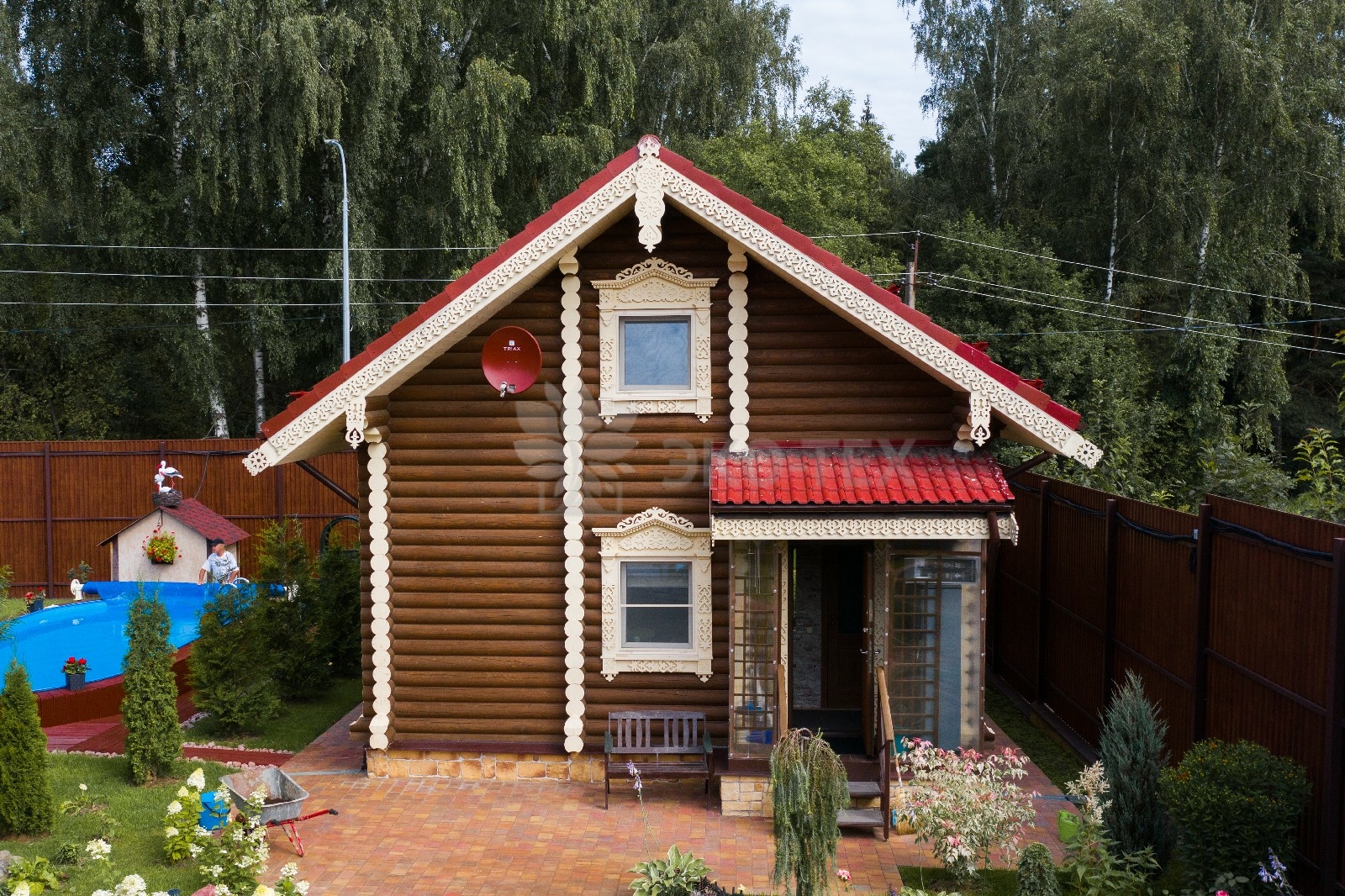 Уютный двухэтажный дом, построенный по проекту «Чернигов», своим внешним видом напоминает сюжеты русских сказок, в которых говорится о прекрасном, светлом тереме. Красивая, ажурная отделка создаёт ощущение лёгкости и напоминает о том, что мастера на Руси всегда славились искусством резьбы по дереву.
