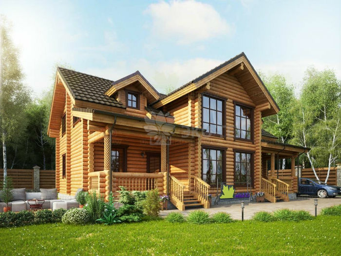 Дома из оцилиндрованного бревна лиственницы становятся настоящей защитной крепостью, где можно отдохнуть и полностью восстановить силы. Кроме того лиственница имеет лечебное антисептическое действие и теплоёмкость, превышающую сосновую. С годами твёрдость домов из лиственницы только увеличивается за счёт полимеризации смол, поэтому лиственницу относят к самым стойким ядровым породам дерева. Дома из лиственницы – это настоящее украшение участка. Такой дом по праву считается престижным жильём, обладая экологическими преимуществами. Деревянные дома всегда отличались богатством украшений росписи и резьбы.