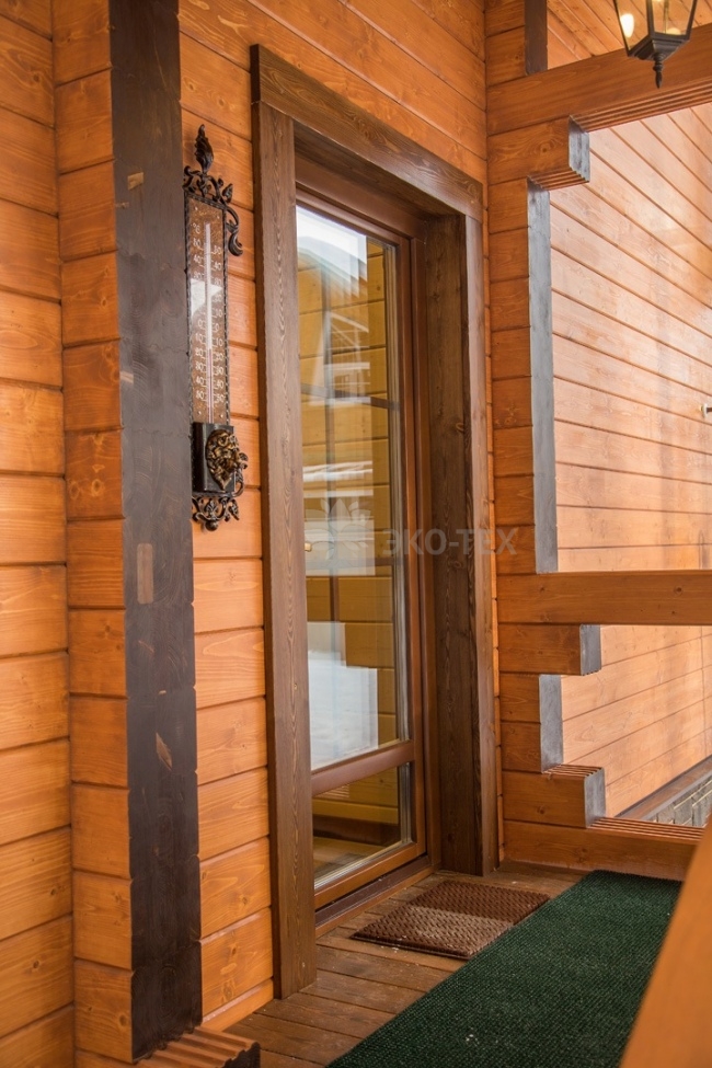 При выборе входной двери для деревянного дома необходимо учитывать главный критерий – это ее надежность. При этом дверь должна гармонично вписываться в общую концепцию дома и сочетаться с наружным видом и дизайном интерьера. Ведь качественная, надежная и красивая дверь как бы является презентацией всей постройки, служит визитной карточкой хозяина. Одним словом, любой дом начинается с двери. Поэтому сюда подойдет только модель из древесины очень хорошего качества. Например, из долговечного дуба или ясеня. Отличным вариантом будет использование металлической двери (если для вас главное это её прочность). Она позволит и защитить дом, и будет в меньшей степени подвержена каким-либо воздействиям: механическим, биологическим или т.д. Неплохой вариант, обладающий и прочностью и соответствующим внешним видом — обшитая деревом стальная модель.