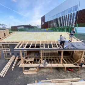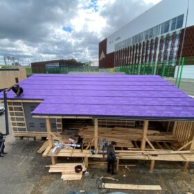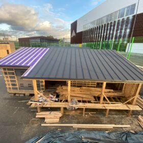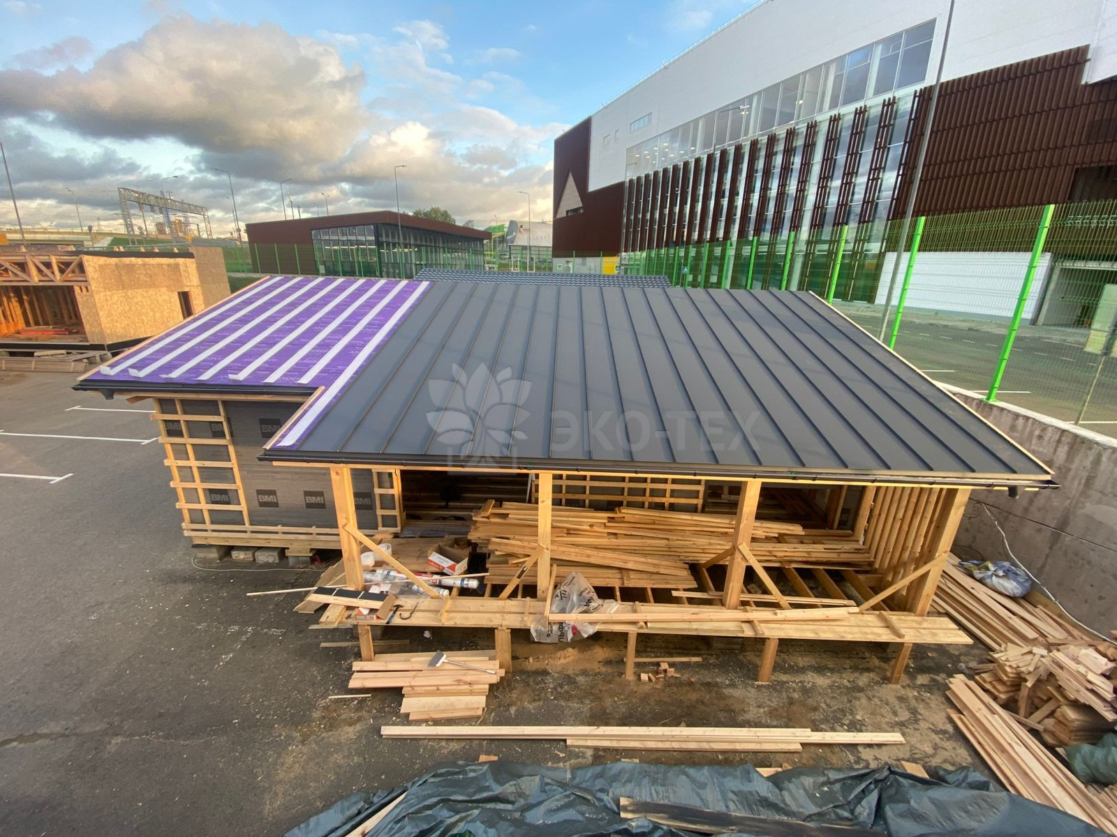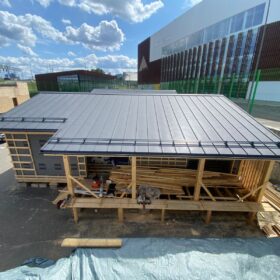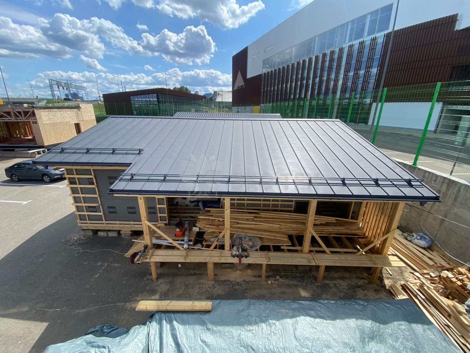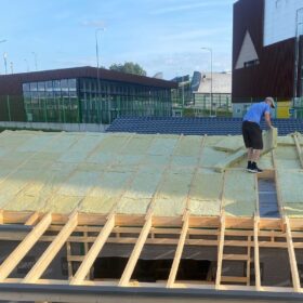 Работы уверенно продвигаются: кровля уже готова, сейчас идёт этап внутренней и внешней отделки.