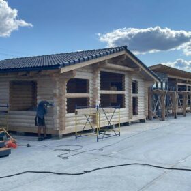 Кроме того, наша команда активно занимается шлифовкой дома «Клин» из оцилиндрованного бревна. Этот этап работы позволяет создать идеально гладкую поверхность и придать дому эстетическую привлекательность.