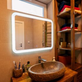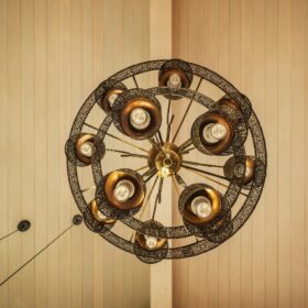 Освещение в подобном интерьере предполагается максимально естественным и интенсивным. Это достигается за счёт больших окон или панорамной системы остекления. Если вы не планируете делать большие окна, то можно ограничиться грамотно размещенным искусственными источниками света, задача которых создать необходимую атмосферу в вашем доме.