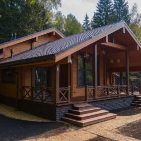 Уютный одноэтажный дом из бревна с террасой БЕСТСЕЛЛЕРЫ 2025