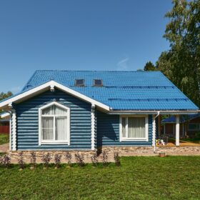 Определяя с оттенком фасада, необходимо учесть, что вначале нужно выбрать цвет кровли. Это связано, в первую очередь, с тем, что выбор оттенков кровельных материалов не столь велик по сравнению с палитрой фасадных красок.