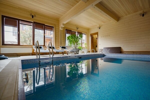 Дом с бассейном и спортзалом по проекту Олимпийск из клееного бруса — фото