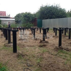 Разработку активно используют в военной промышленности, а это говорит о надежности решения. Винтовые сваи, представляющие собой специальные трубы с лопастями, являются основой фундамента.