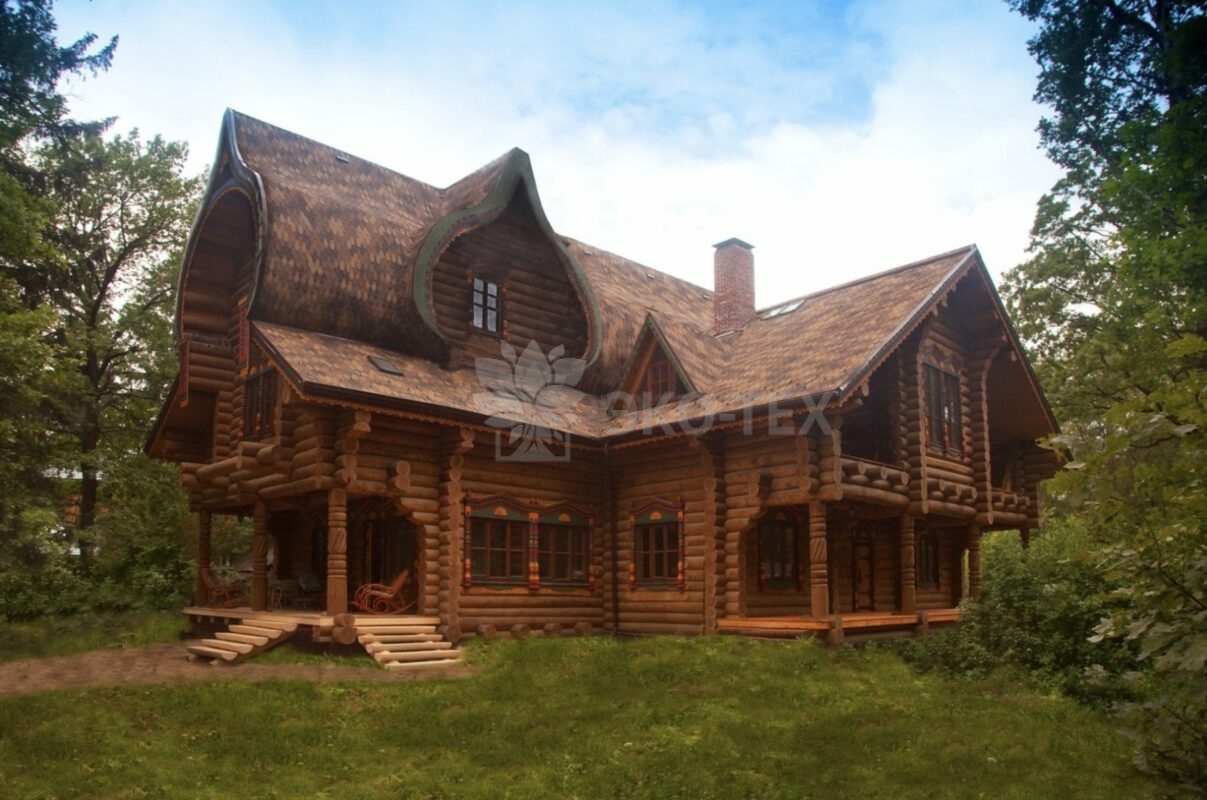 Одним из самых сложных с архитектурной точки зрения проектов, выполненных нашими мастерами является дом в духе русских сказок и традиций деревянного зодчества.
