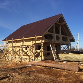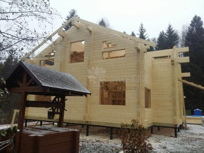 Двухэтажный дом со вторым светом, материал оцилиндрованное бревно