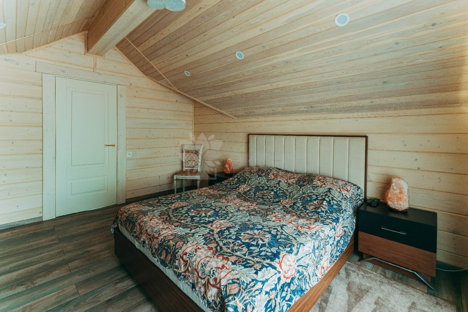 Подбирая мебель для спальни в доме из бревна или бруса, обратите внимание на изделия из натурального массива древесины. Они прекрасно дополнят с общий стиль помещения и подчеркнут его уникальность.