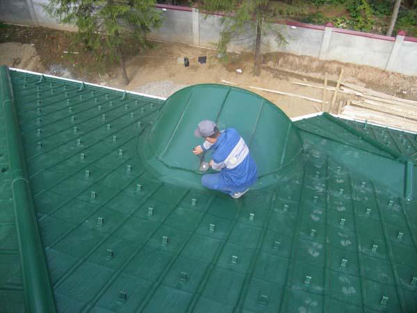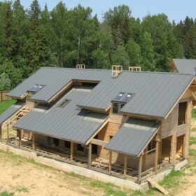 Тип применяемой кровли зависит исключительно от вкуса Заказчика и может быть любым: от мягкой до натуральной глиняной черепицы, сланца или соломы.
