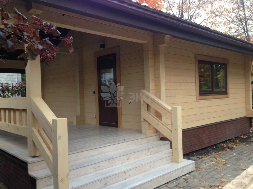 Одноэтажный дом с большой террасой и гостиной, материал клееный брус