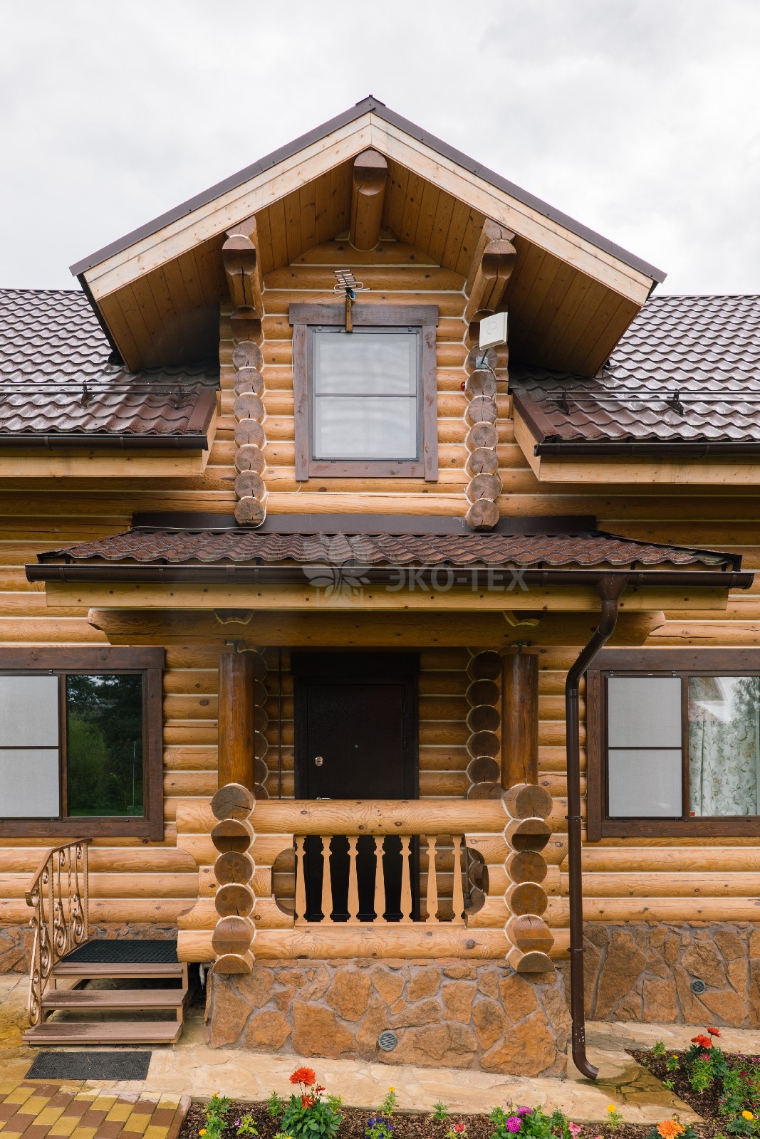 Двухэтажный дом с террасой и мансардой, материал оцилиндрованное бревно