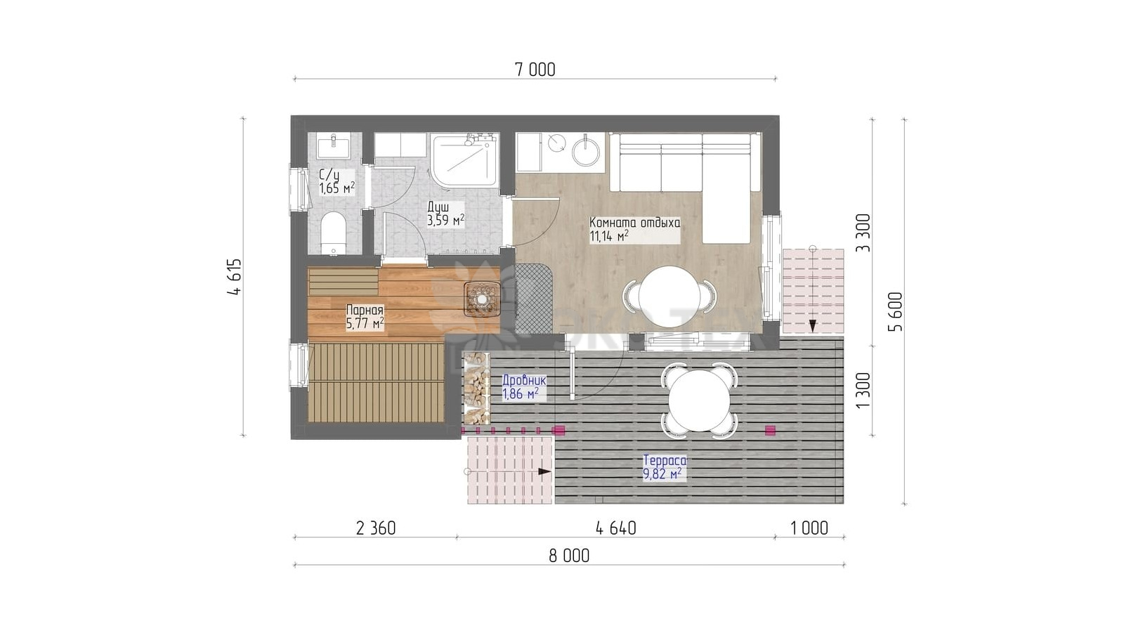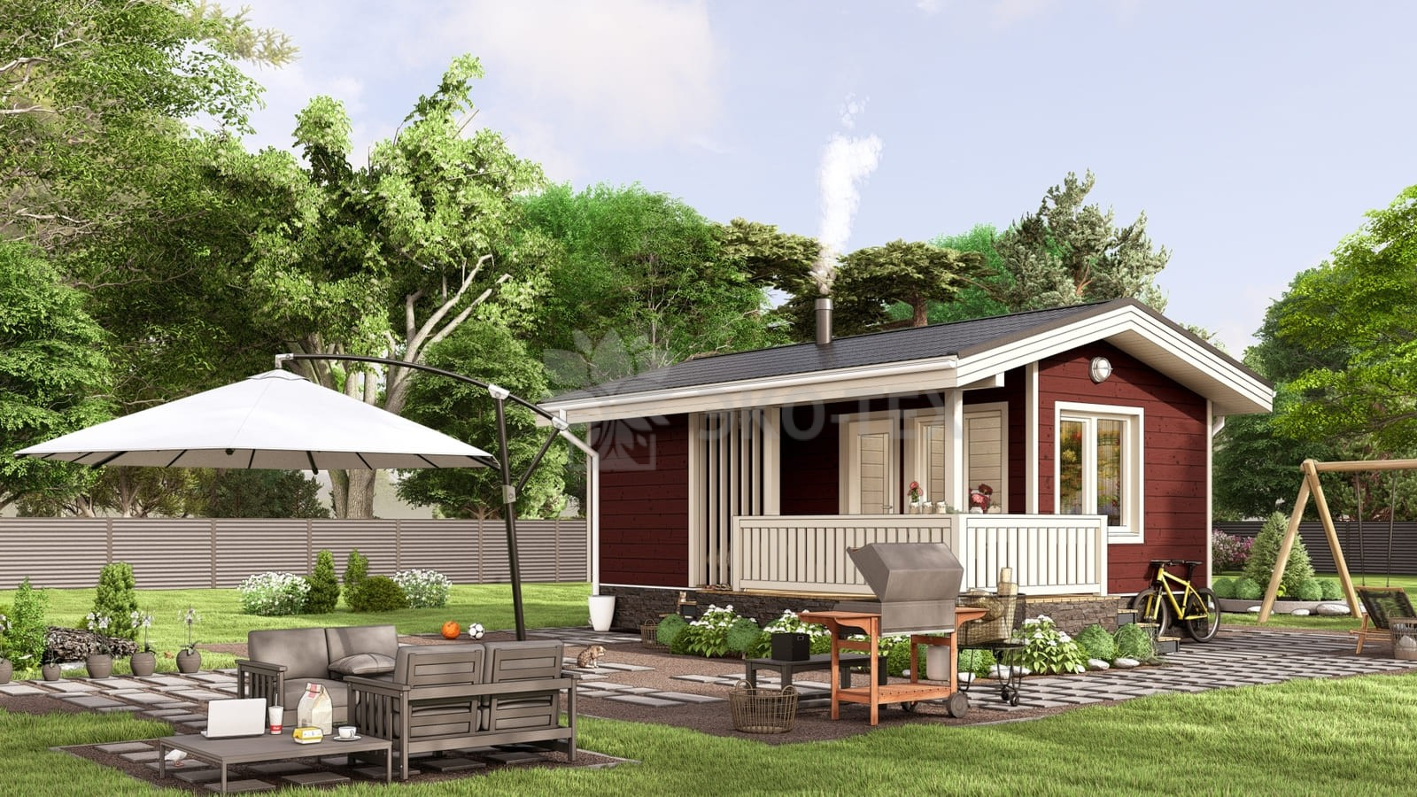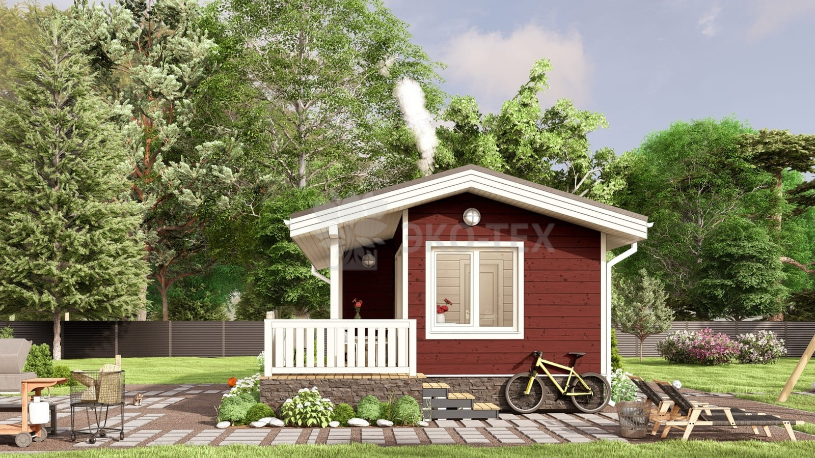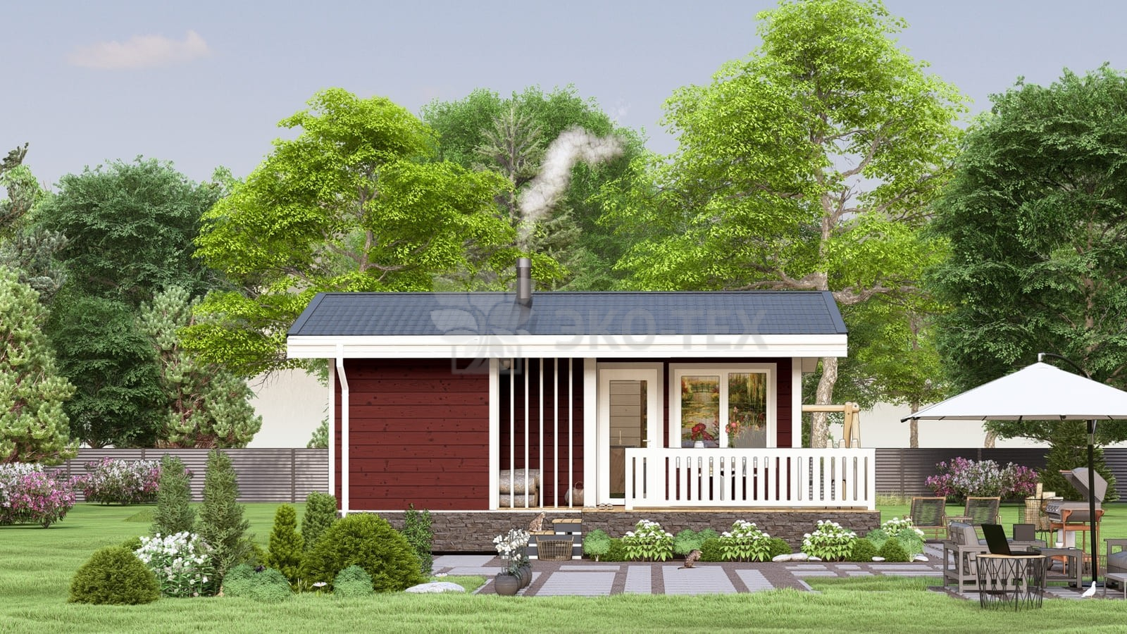 Небольшая баня с просторной террасой