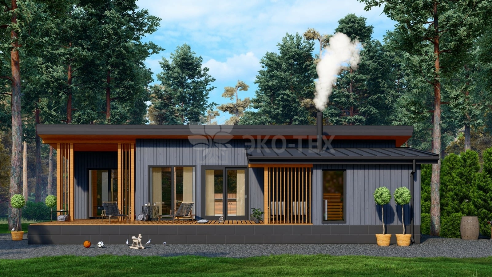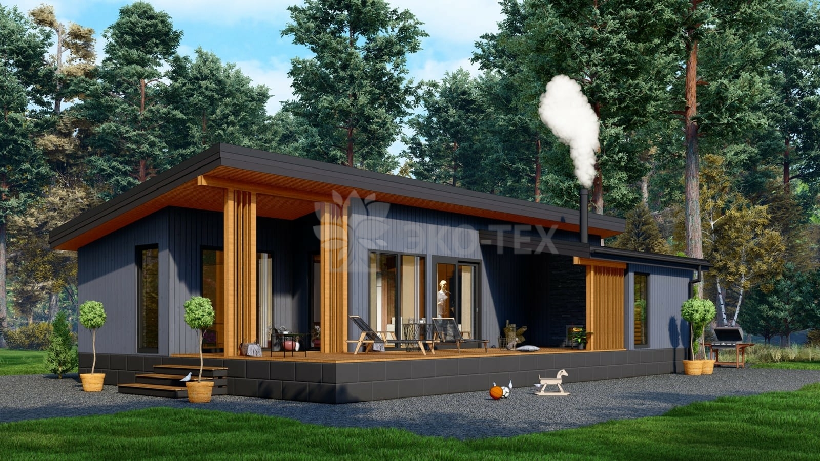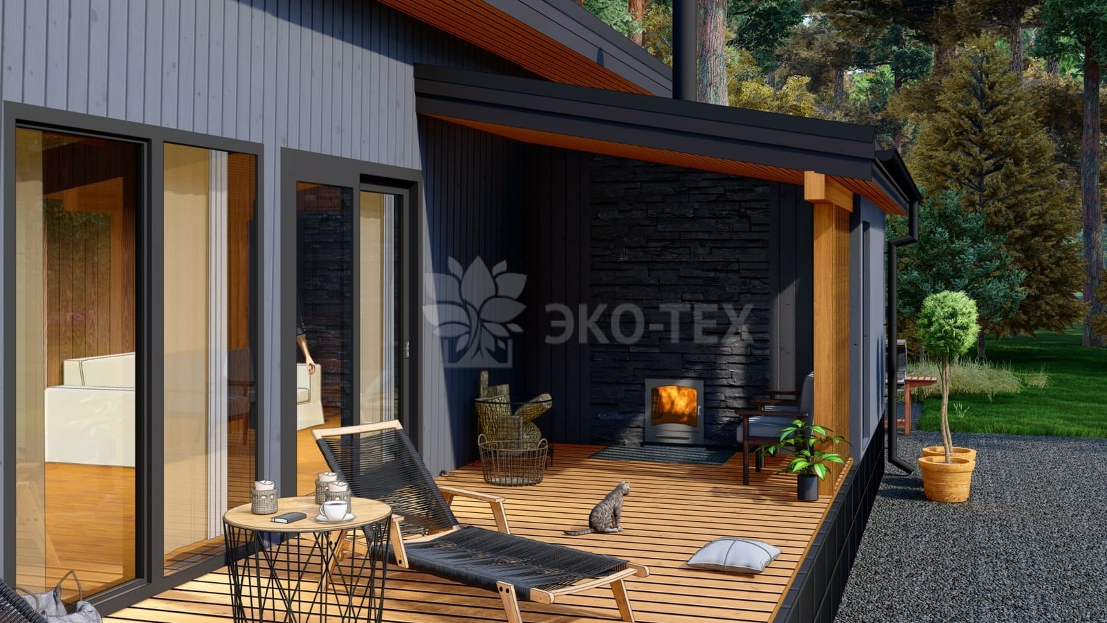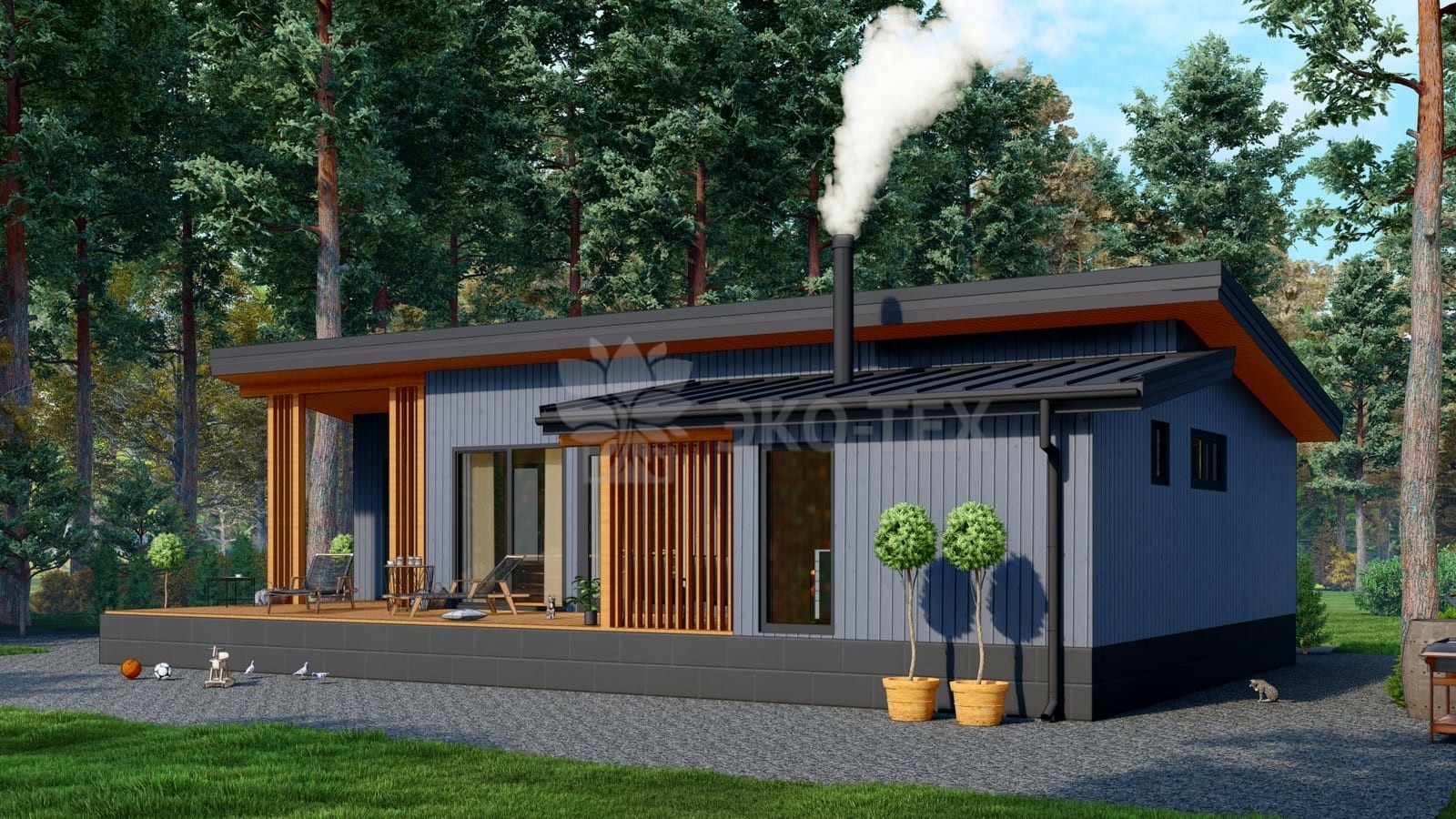 Каркасный дом для постоянного проживания c кровлей металлочерепица, отделка, окна, фундамент железобетонные сваи сечение 150*150 мм, L (длина) - 3 000 мм