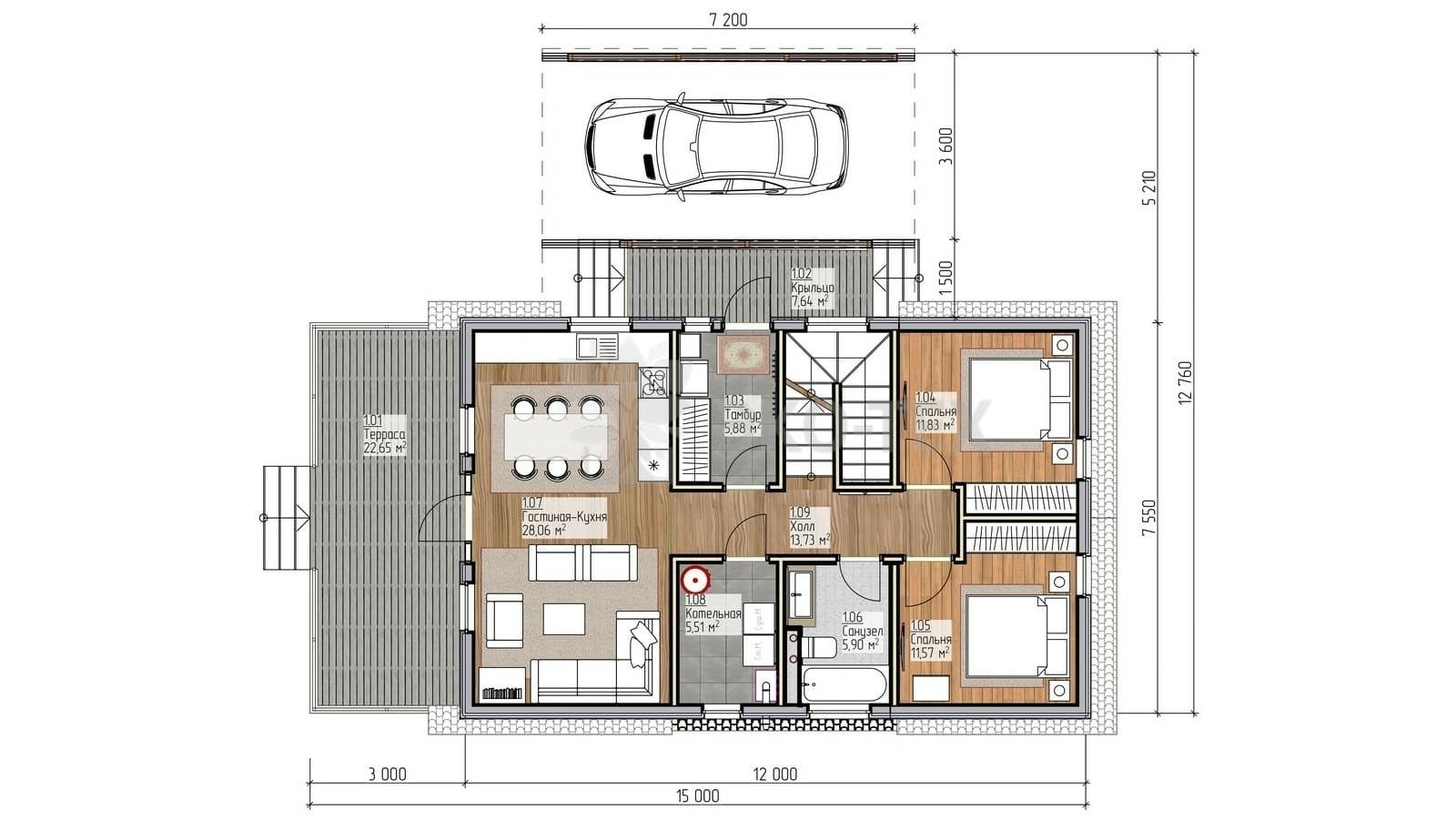 Двухэтажный дом, второй свет, с навесом для машины