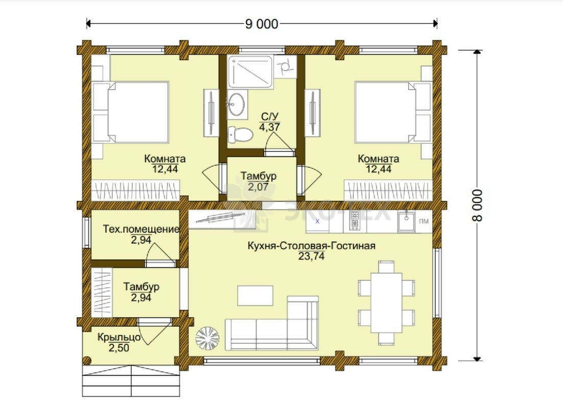 За аккуратным и компактным внешним видом этого дома вы с удивлением обнаружите две удобные жилые комнаты, которые имеют два отдельных входа. Комнаты полностью отделены друг от друга тамбуром и санузлом.
