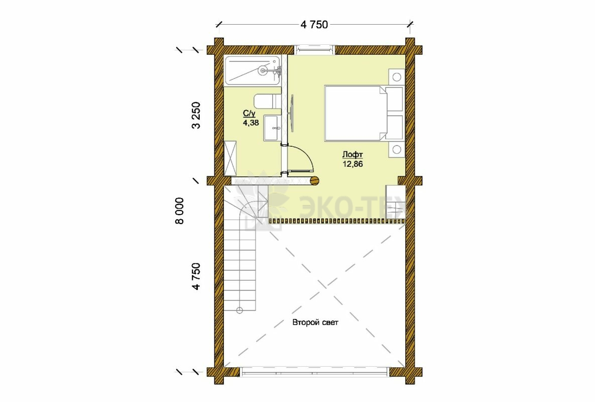 На втором этаже предусмотрен собственный санузел и отдельная комната лофт. Это один из наших наиболее стильных проектов, который также дополнен просторный верандой, которая в летнее время может с успехом играть как роль зоны отдыха, так и мини-кафе.