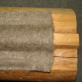 Мох следует слегка подсушить, распределить по поверхности паза. Низкий уровень эластичности материала приводит к усушке уплотнителя, провоцирующее усадочную деформацию и появление щелевых образований. В этом случае повторная процедура проводится с использованием льняной или пеньковой пакли.