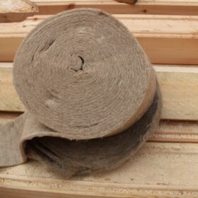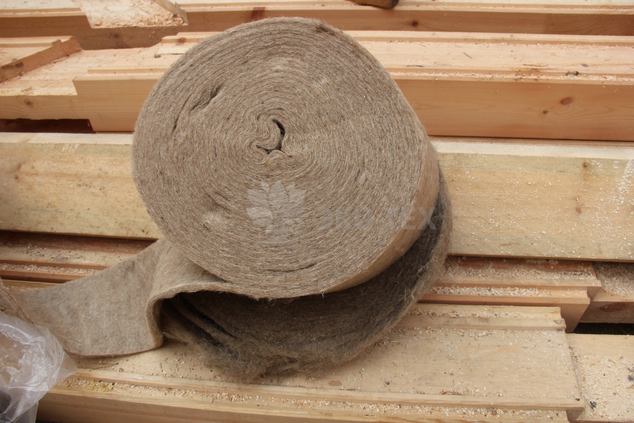 Ленточные материалы высокотехнологичны, их использование упрощает работы на объекте. Применение льняных и джутовых материалов отличная возможность обеспечить тепло и уют в доме. Чёсаные и прошитые материалы прокладываются в паз в продольном направлении, за счет чего получается лента. Льноволокно обеспечивает ровный слой, полотно прилегающий благодаря волокнам. Льняной войлок более практичен, он обладает отличными звукоизоляционными показателями. Его нарезают ровными брусками и укладывают продольными рядами.