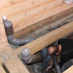 В деревянных домах есть особенности монтажа канализационных систем. Деревянный дом дает усадку, это один из немногих моментов строительства деревянного дома, который нужно учитывать.