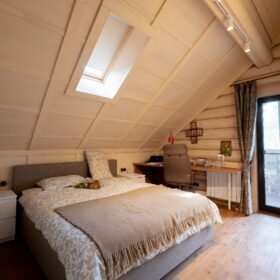 Идеальным решением будет, если рядом со спальней в мансардном этаже будет отдельный санузел, а также собственный выход на балкон. В этом случае вы получите полностью независимую и обособленную зону отдыха.