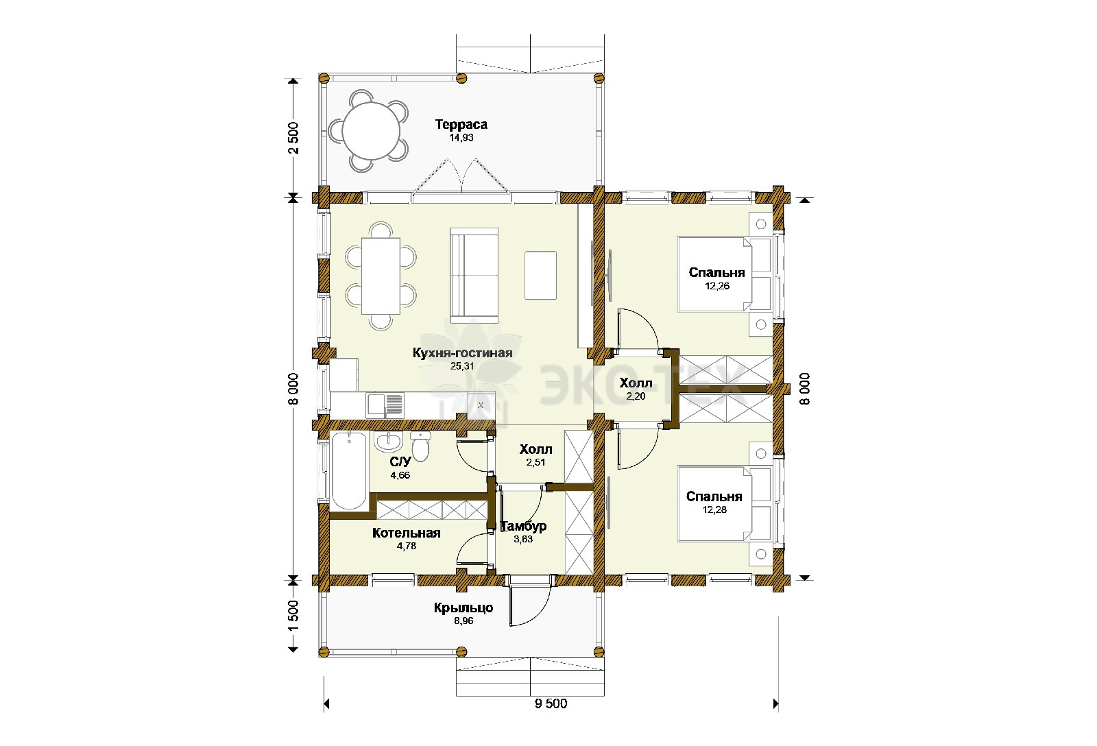 Одноэтажный дом из бревна «Воскресенск»