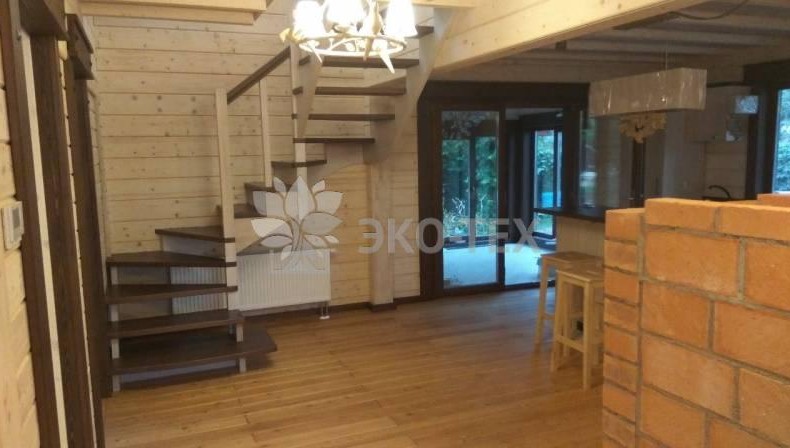 Также это прочный, долговечный и достаточно практичный материал, который к тому же имеет очень эстетически приятный внешний вид и ходить по нему тоже приятно. Так как речь идет о деревянном доме, следует отметить, что неполное покрытие, выполненное на основе дерева, будет хорошо смотреться и визуально дополнять общий дизайн всех деревянных конструкций сооружения.