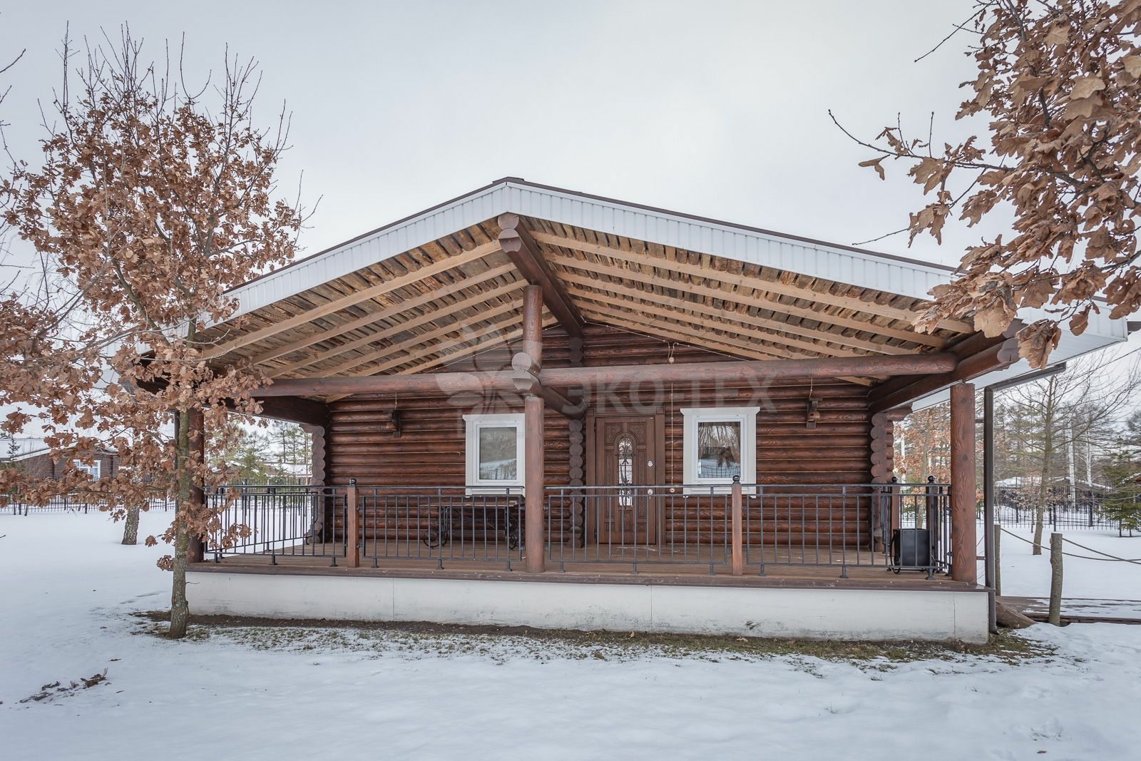 Двухэтажный дом из бревна с террасой