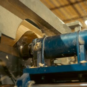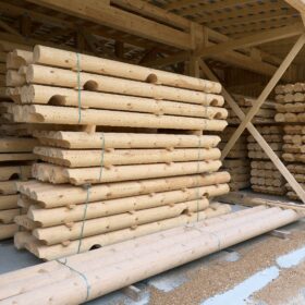 Для изготовления оцилиндрованного бревна или бревна ручной рубки, основное требование — идеально ровное строение ствола. За всю историю работы компании мы испытали разные станки для оцилиндровки и выбрали токарно-роторный станок, который обеспечивает лучшее соотношение производительности и качества обработки.