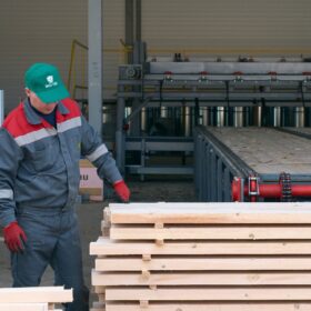 Ежемесячный выпуск продукции составляет более 10 000 м³, включая пиломатериалы, клееный брус, термодоску и другие изделия.