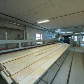 Для производства клееного бруса мы используем автоматическую линию, которая обеспечивает высококачественную обработку древесины и ее склейку. Эта линия позволяет нам выпускать клееный брус различных сечений и длиной до 14,5 м и с объемом более 2 000 м³ в месяц, идеально подходящий для строительства домов и других конструкций, обеспечивая прочность и долговечность на протяжении многих лет.