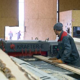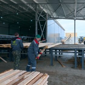 Наша линия распиловки «Крафтер» обеспечивает высокую производительность и точность при обработке древесины. Она позволяет нам производить пиломатериалы с максимальной эффективностью, сохраняя при этом идеальные геометрические размеры для дальнейшей обработки. Выпуск пиломатериалов с данной линии в смену составляет более 200 м³.