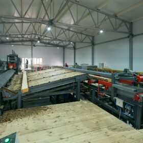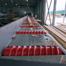 Горбыльная и подгорбыльная доска обрезаются на кромкообрезном станке, а лафетная проходит высокоточный распил. Вся продукция сортируется по категориям, а система аспирации удаляет опилки и мелкие частицы, поддерживая чистоту в производственном помещении.
