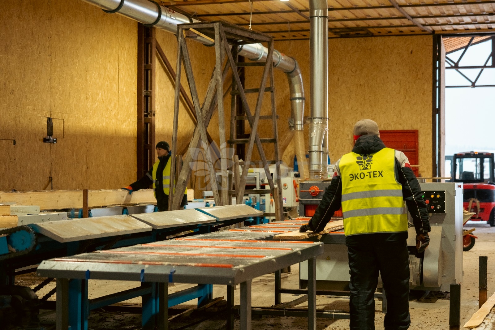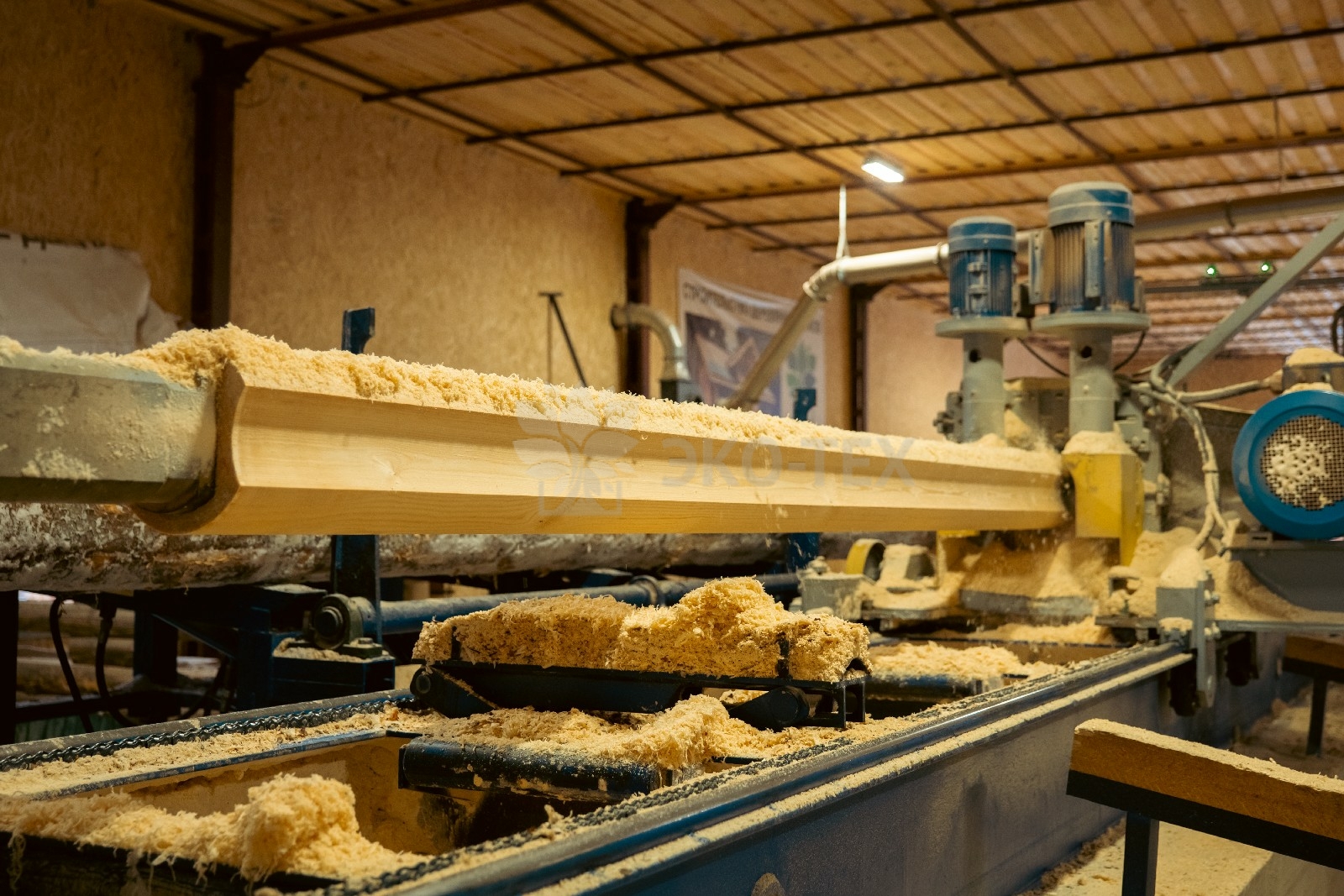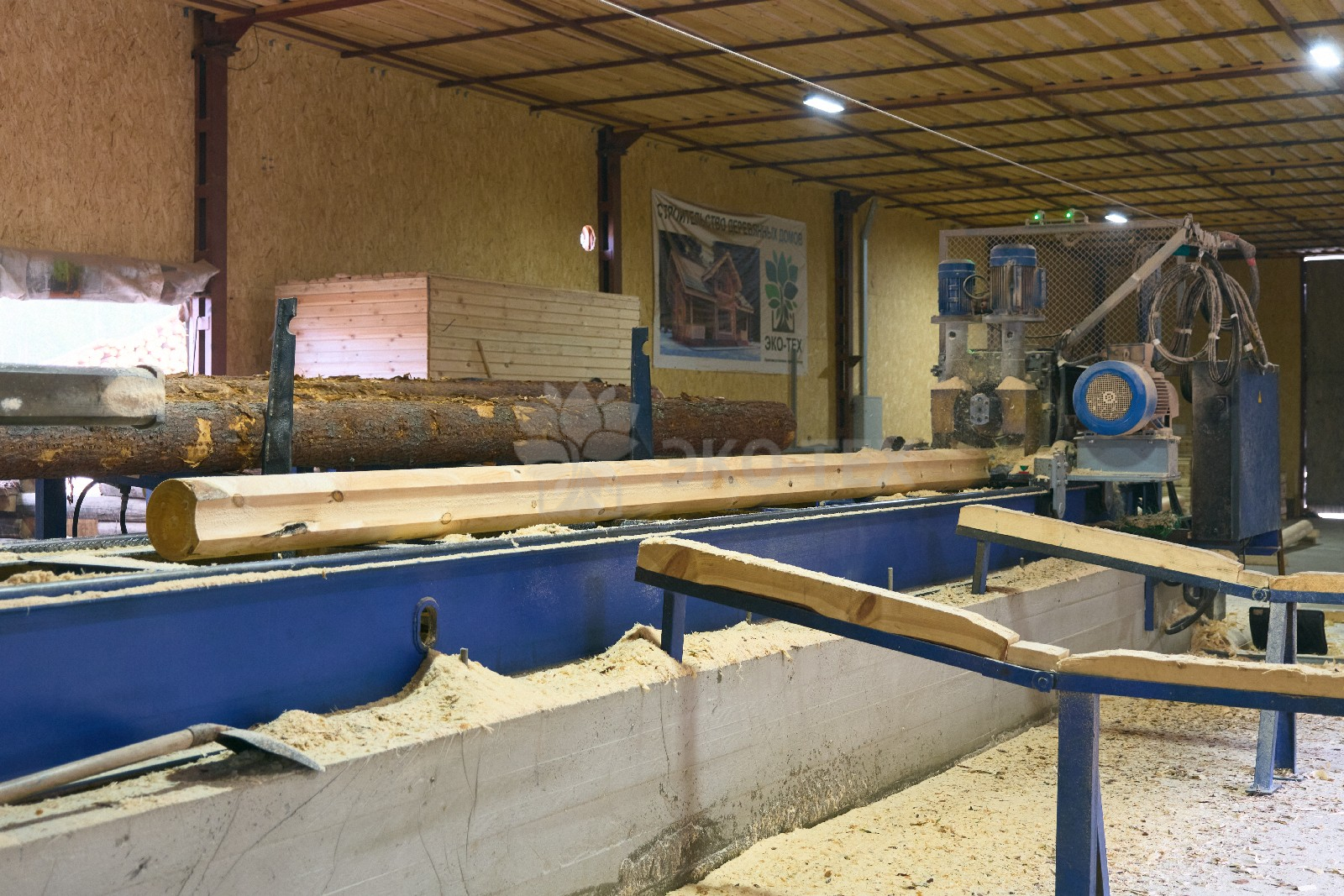 Цех оснащен станком «Вудвер» для переработки толстомера и линией распиловки «Вальтер». Эти станки обеспечивают обработку сырья от диаметра 12 см до максимально возможного.