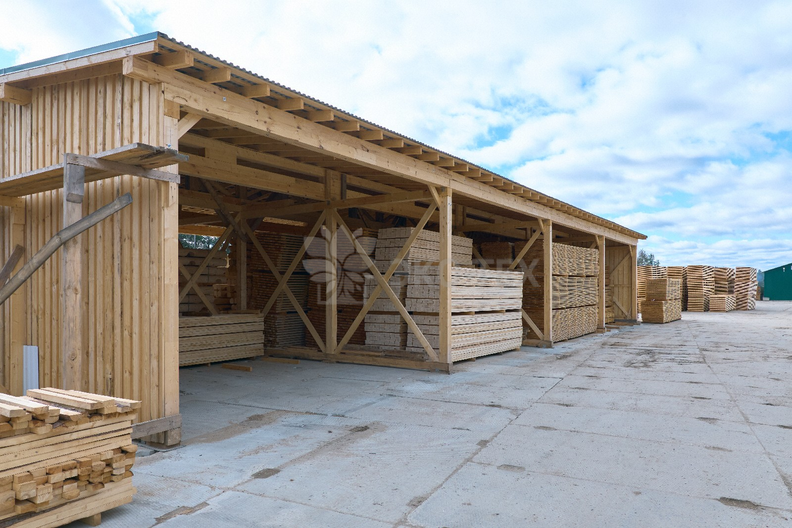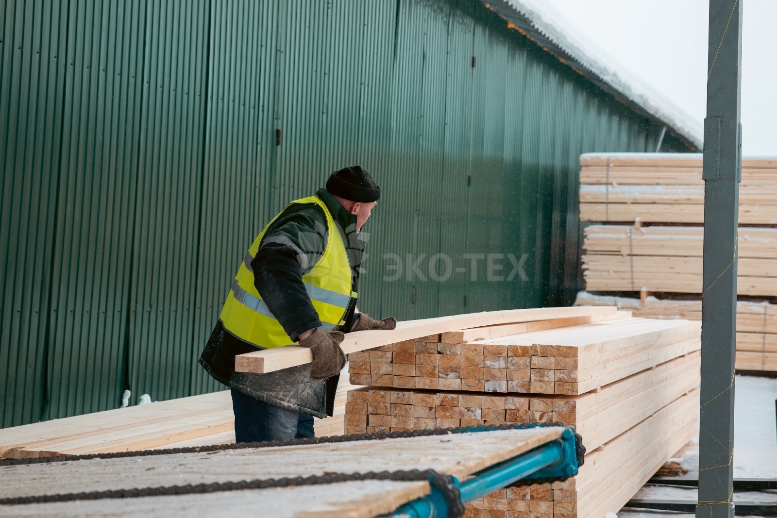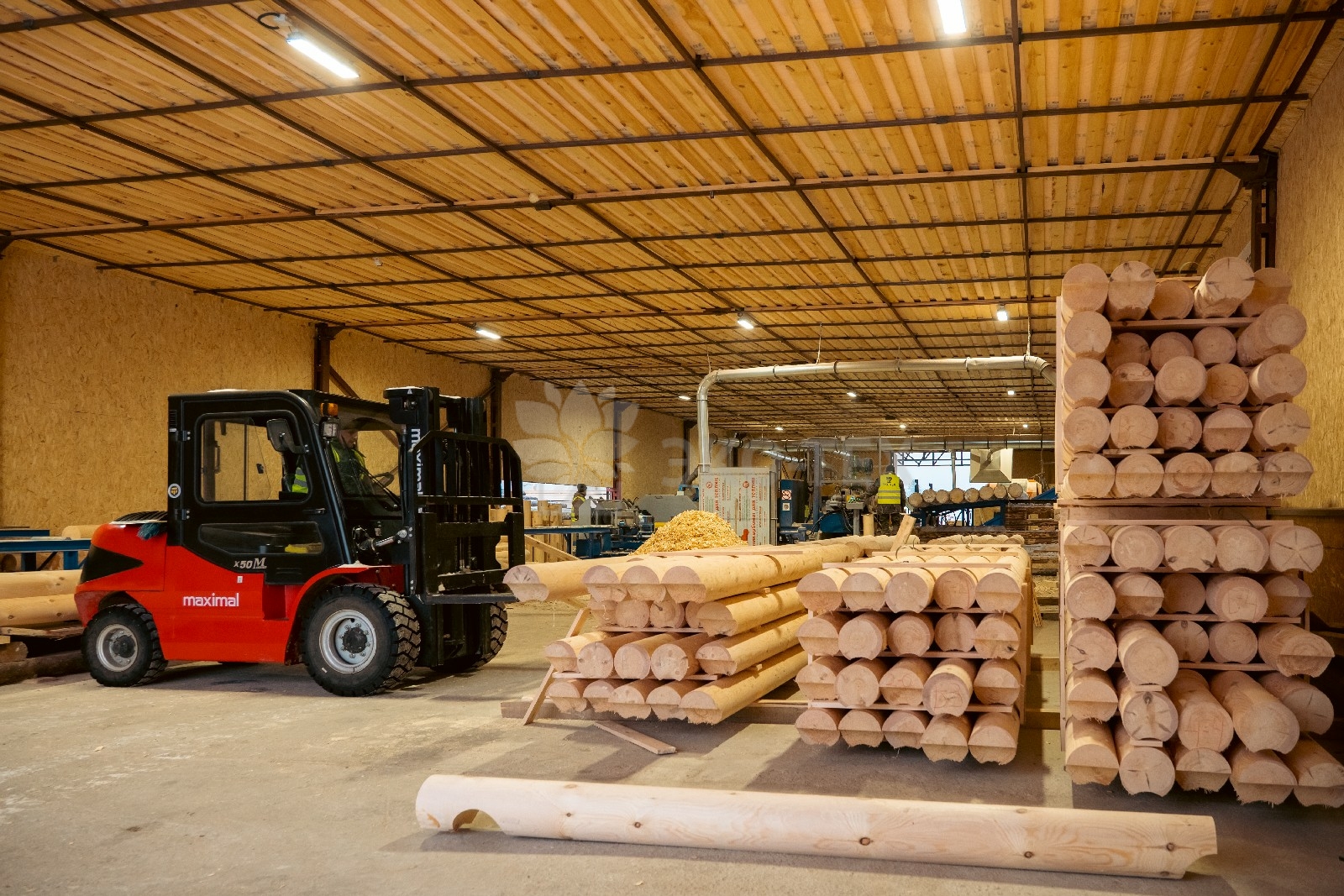 Цех оснащен станком «Вудвер» для переработки толстомера и линией распиловки «Вальтер». Эти станки обеспечивают обработку сырья от диаметра 12 см до максимально возможного.