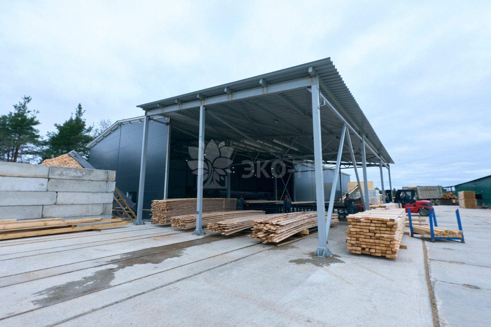 Производственный комплекс оснащен котельной, которая использует отходы производства в качестве топлива. Это решение обеспечивает стабильное теплооснабжение всех технологических процессов, включая сушку древесины и работу оборудования, при этом оставаясь самодостаточным и экологически чистым.