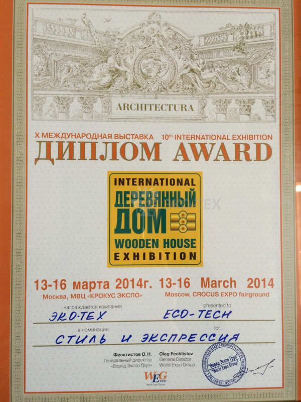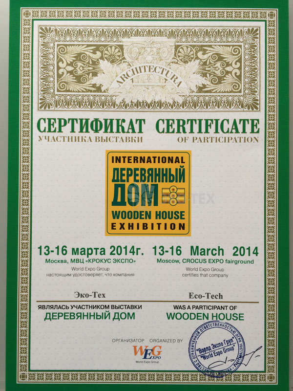 С 13 по 16 марта 2014 года компания «Эко-Тех» принимала участие в X Международной выставке «ДЕРЕВЯННЫЙ ДОМ 2014», которая состоялась в Крокус-Экспо.
