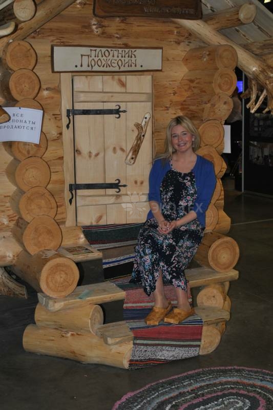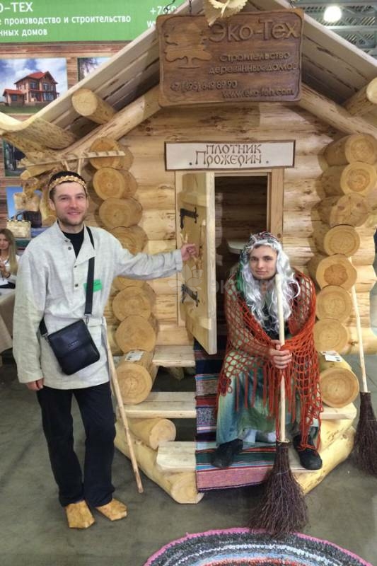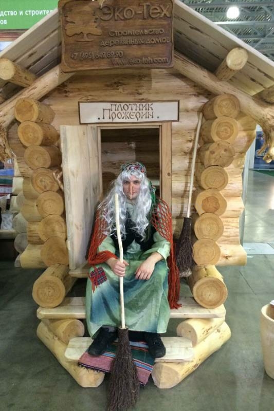 На нашем стенде всех гостей на крыльце настоящей Избушки на курьих ножках встречала Баба Яга