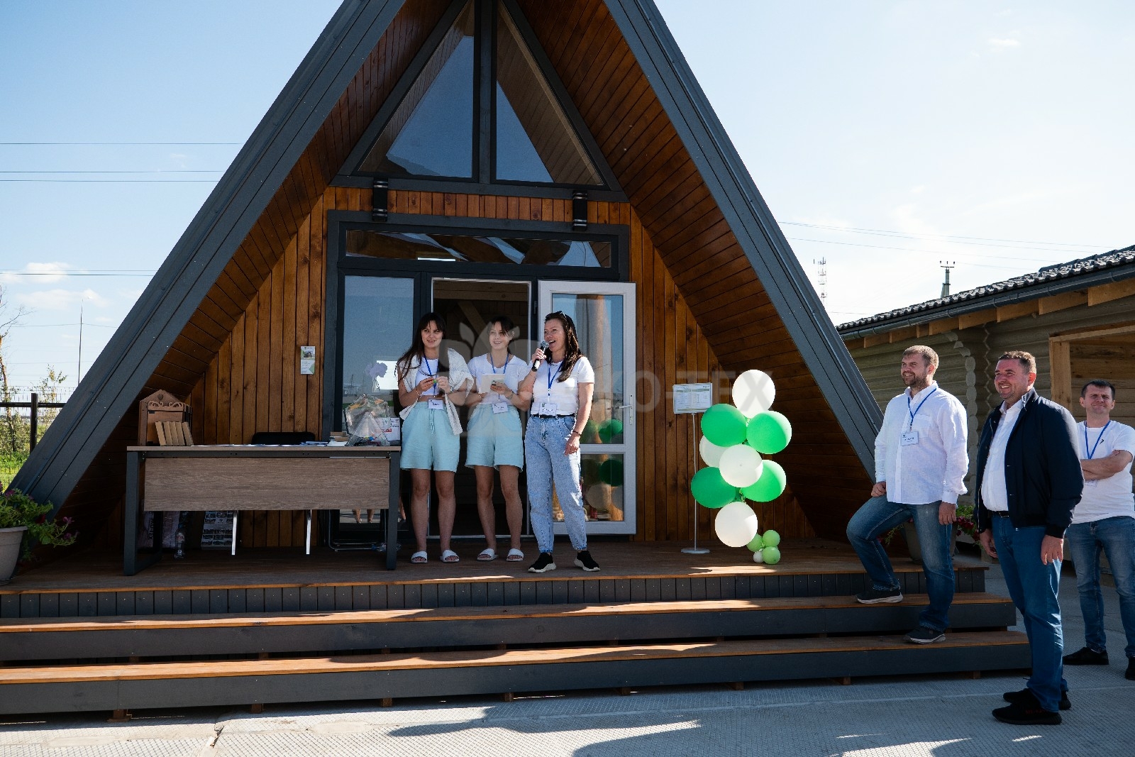 Мы собрали наших гостей, наши специалисты приветствовали каждого посетителя и проводили экскурсии по выставочной площадке, рассказывая о преимуществах и особенностях каждого из представленных домов.