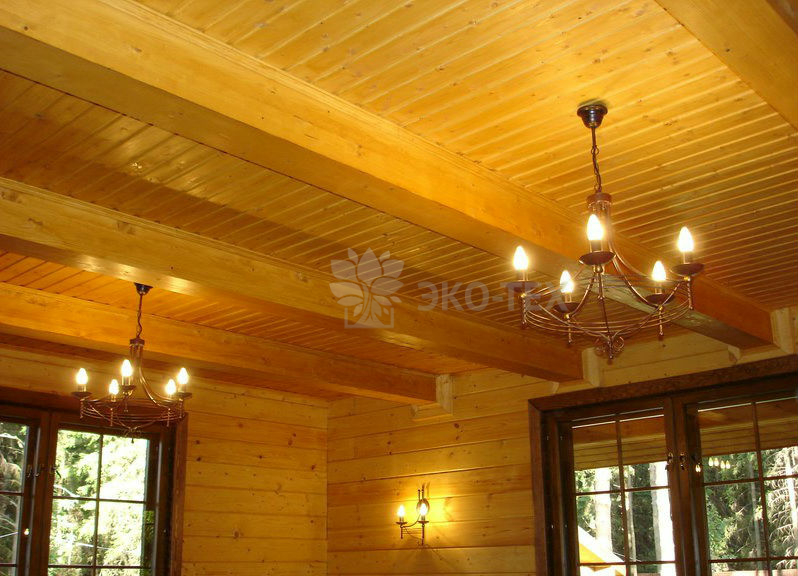 Зазоры между балками устраняется посредством теплоизоляционных строительных средств. Обшивка производится опытными специалистами с использованием современного оборудования. Древесные материалы (реечные конструкции) позволяют создать в помещениях идеальный микроклимат за счет естественной влажности и насыщения воздуха фитонцидами.