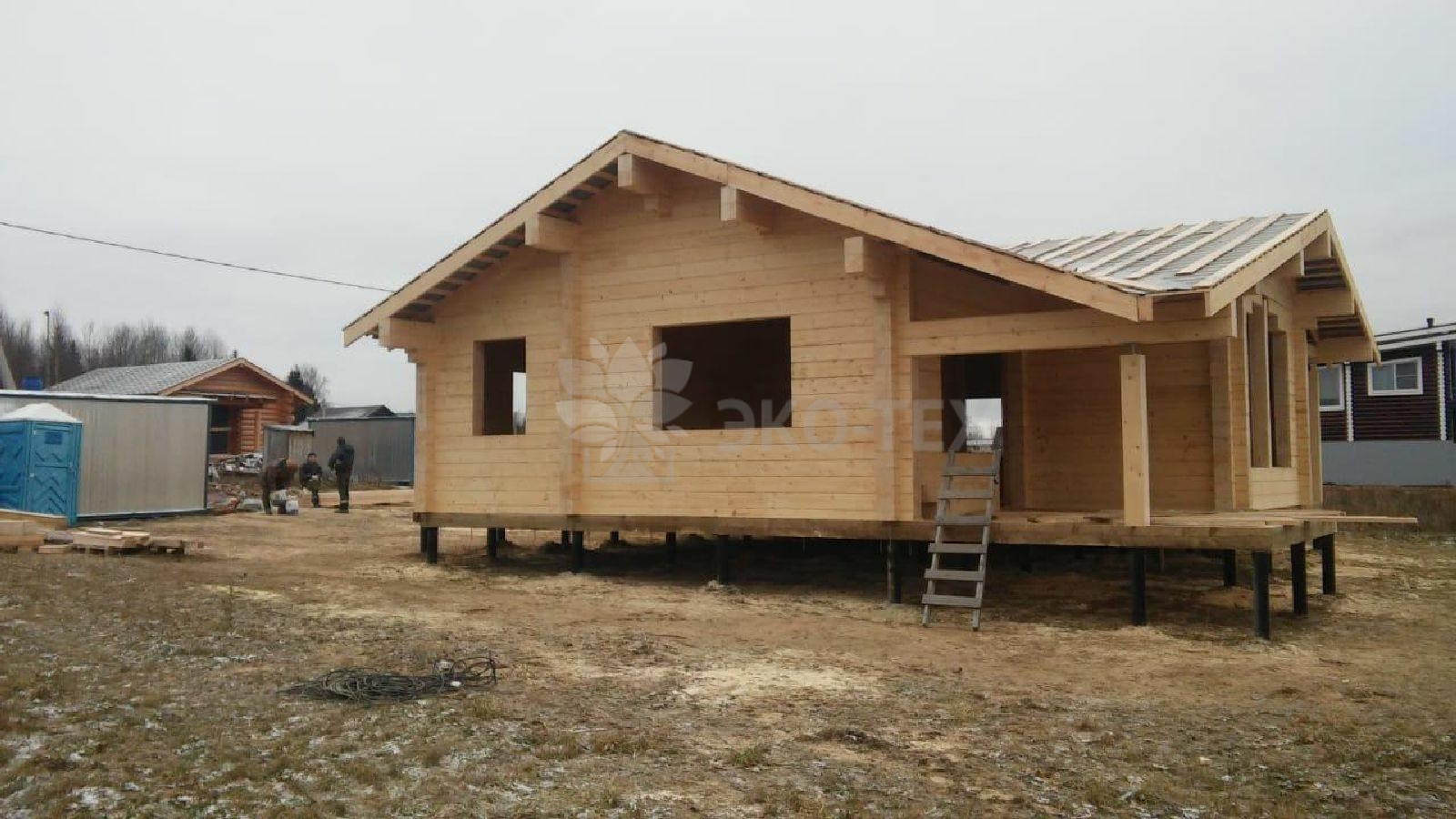 Дом с двумя входами с террасы и крыльца, 2 спальни, кухня-гостиная. Площадь 93 кв.м.