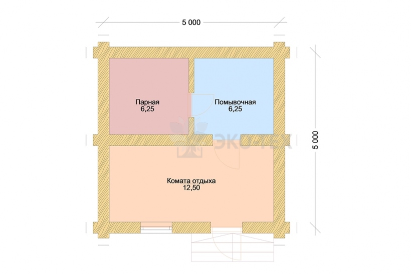 Проект одноэтажной бани с комнатой отдыха из бревна