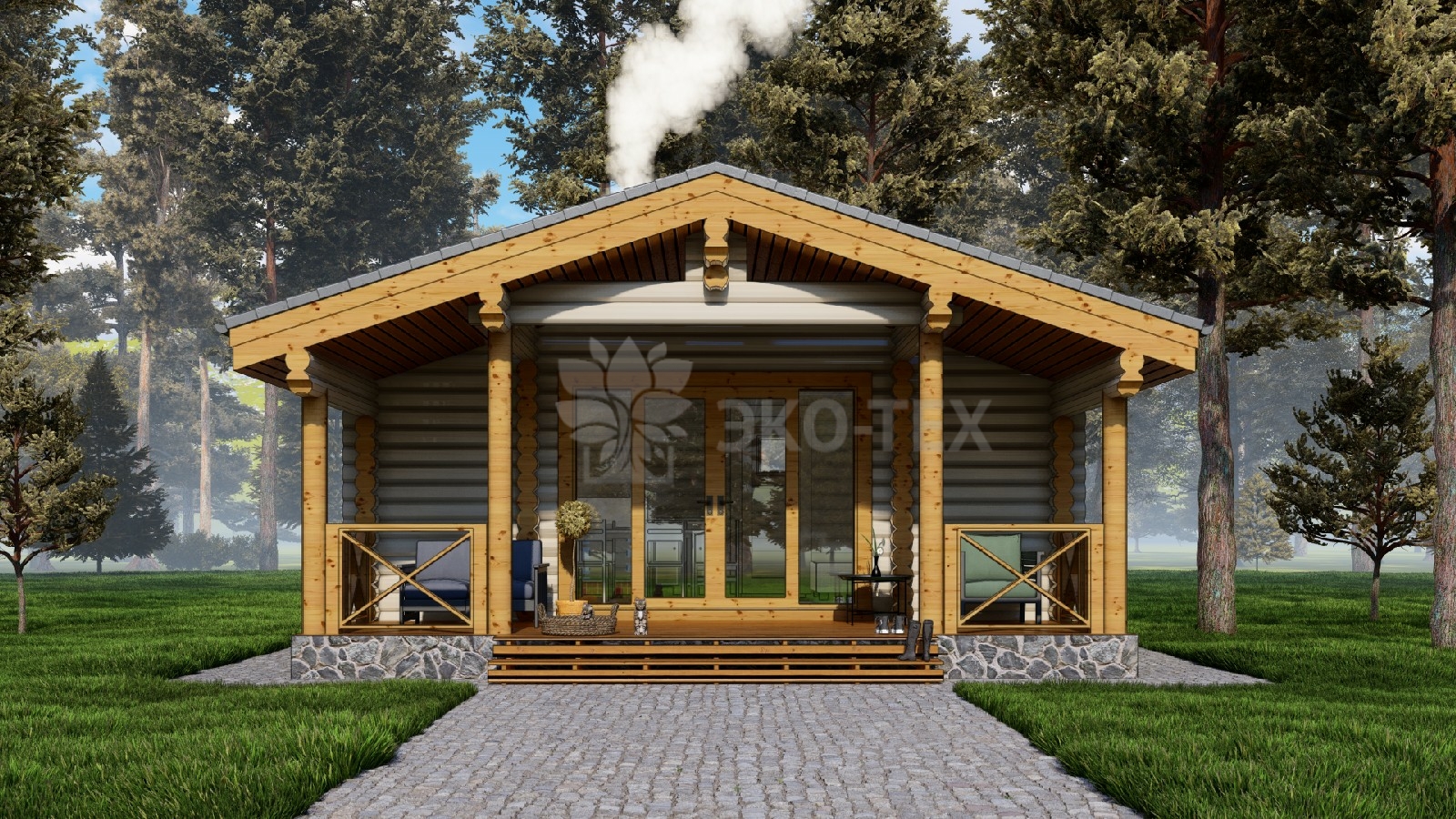 Уютная баня с комнатой отдыха и террасой