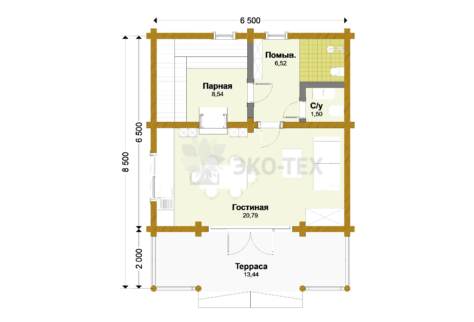 Проект бани из бревна «Лыткарино»