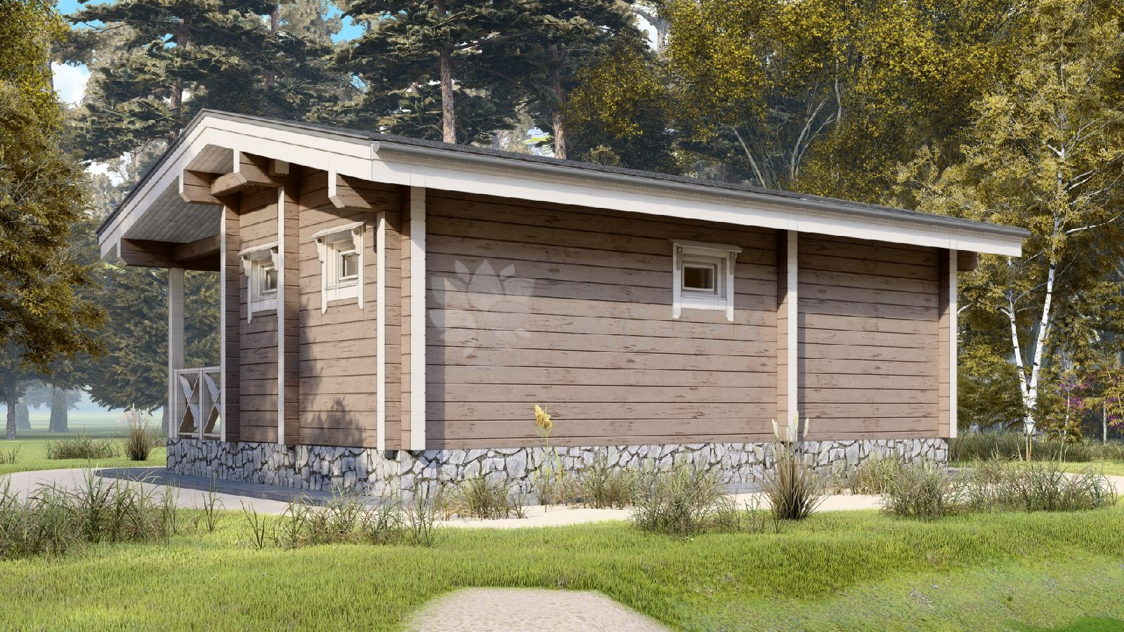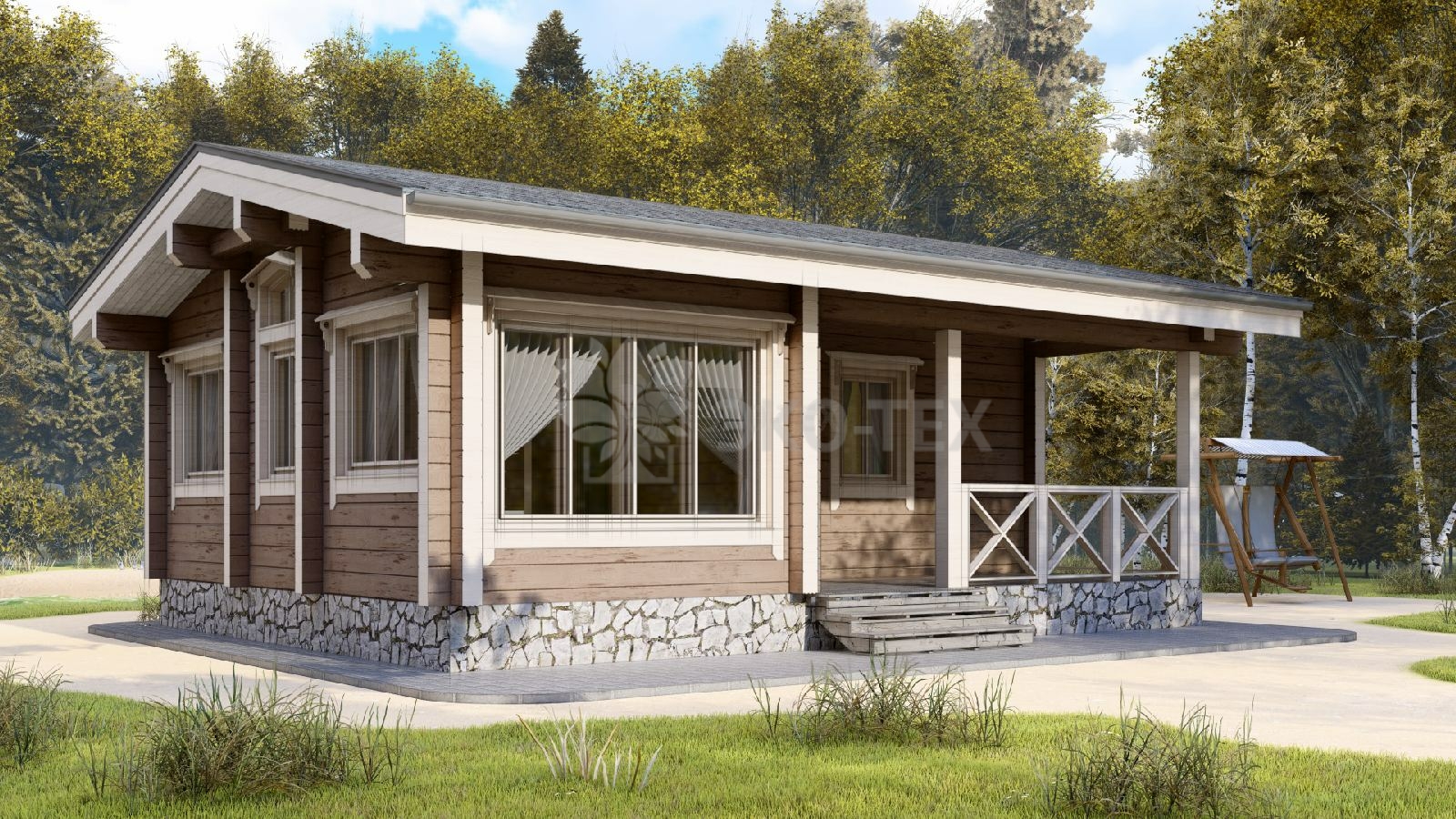Проект одноэтажной бани с террасой из клеенного бруса