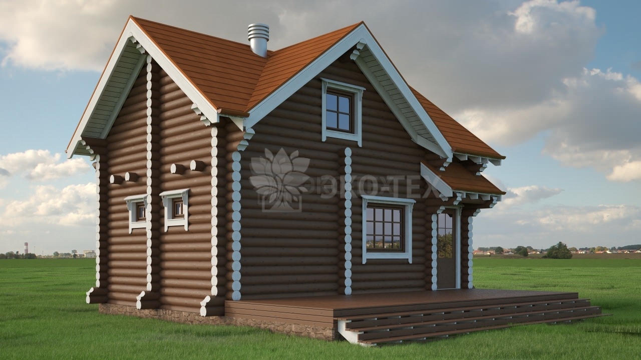 Двухэтажная просторная баня из бревна