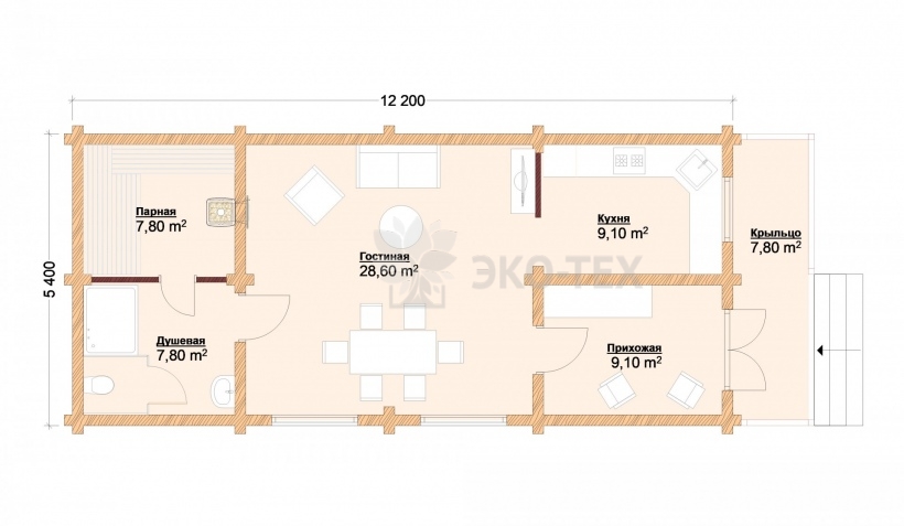 Большая баня с комнатой отдыха, кухней и террасой