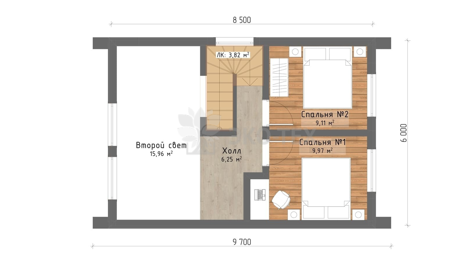 Двухэтажный дом, большая гостиная, второй свет, 3 спальни