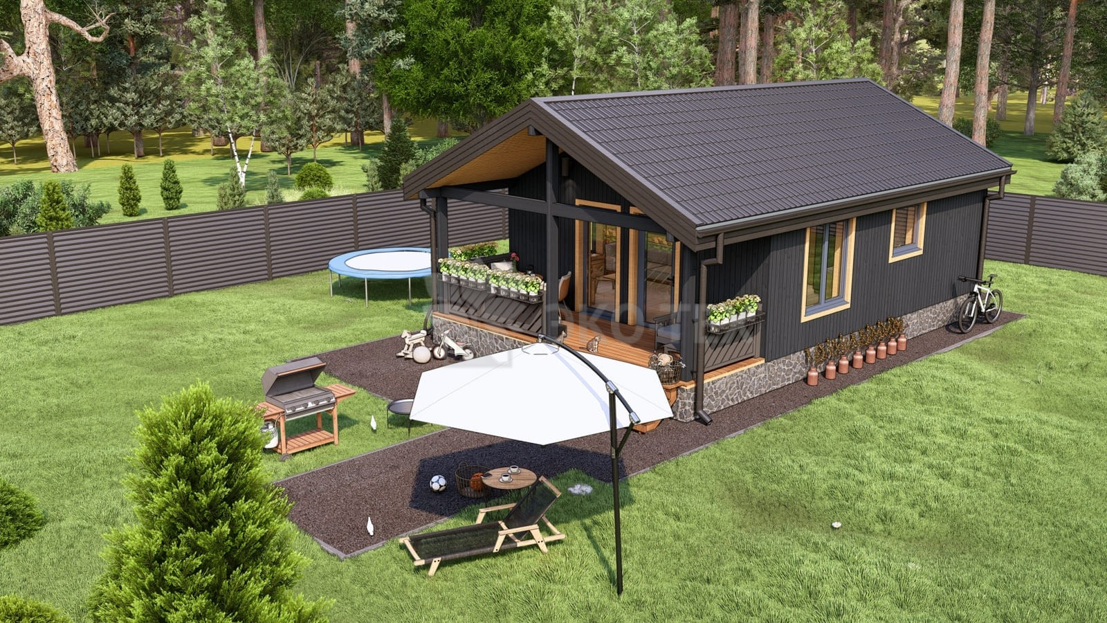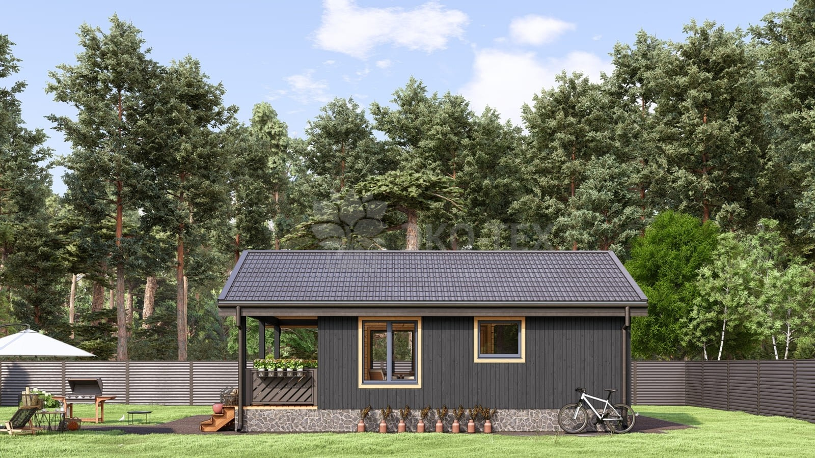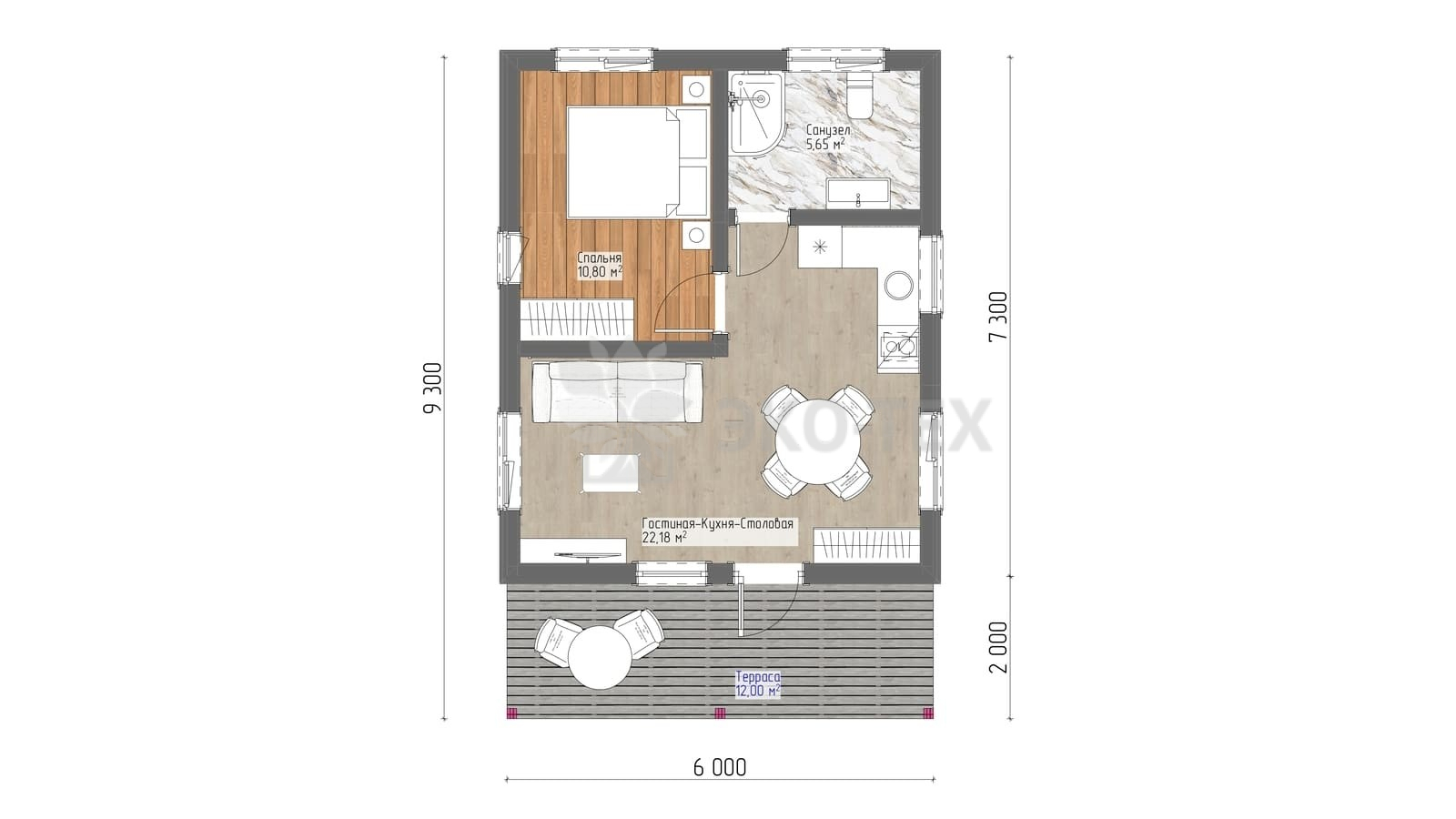 Небольшой дом спальня, кухня-гостиная, терраса