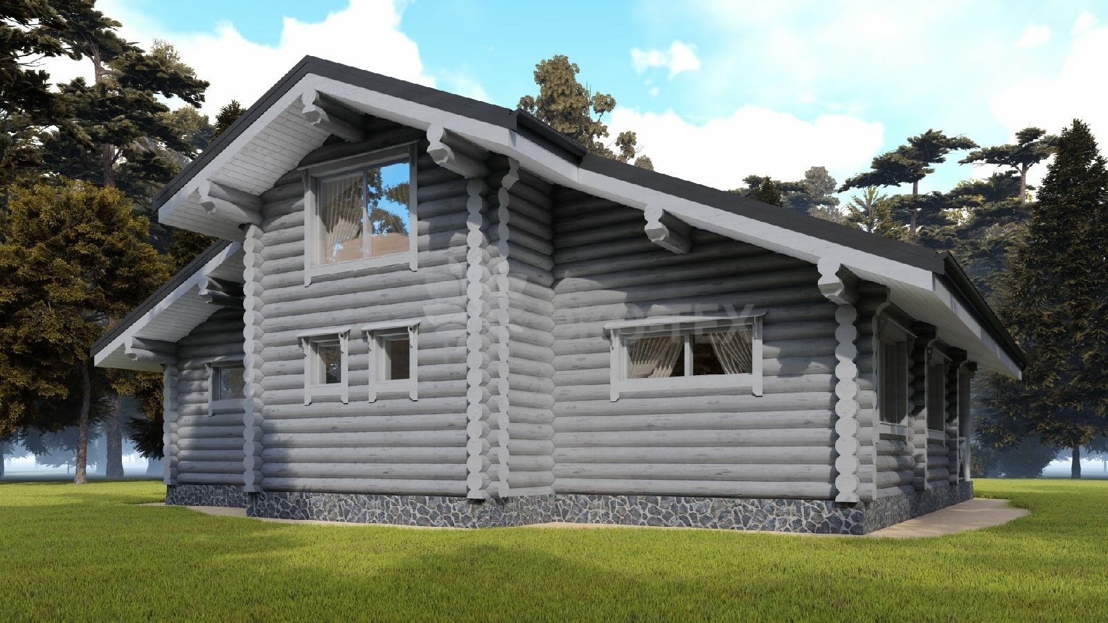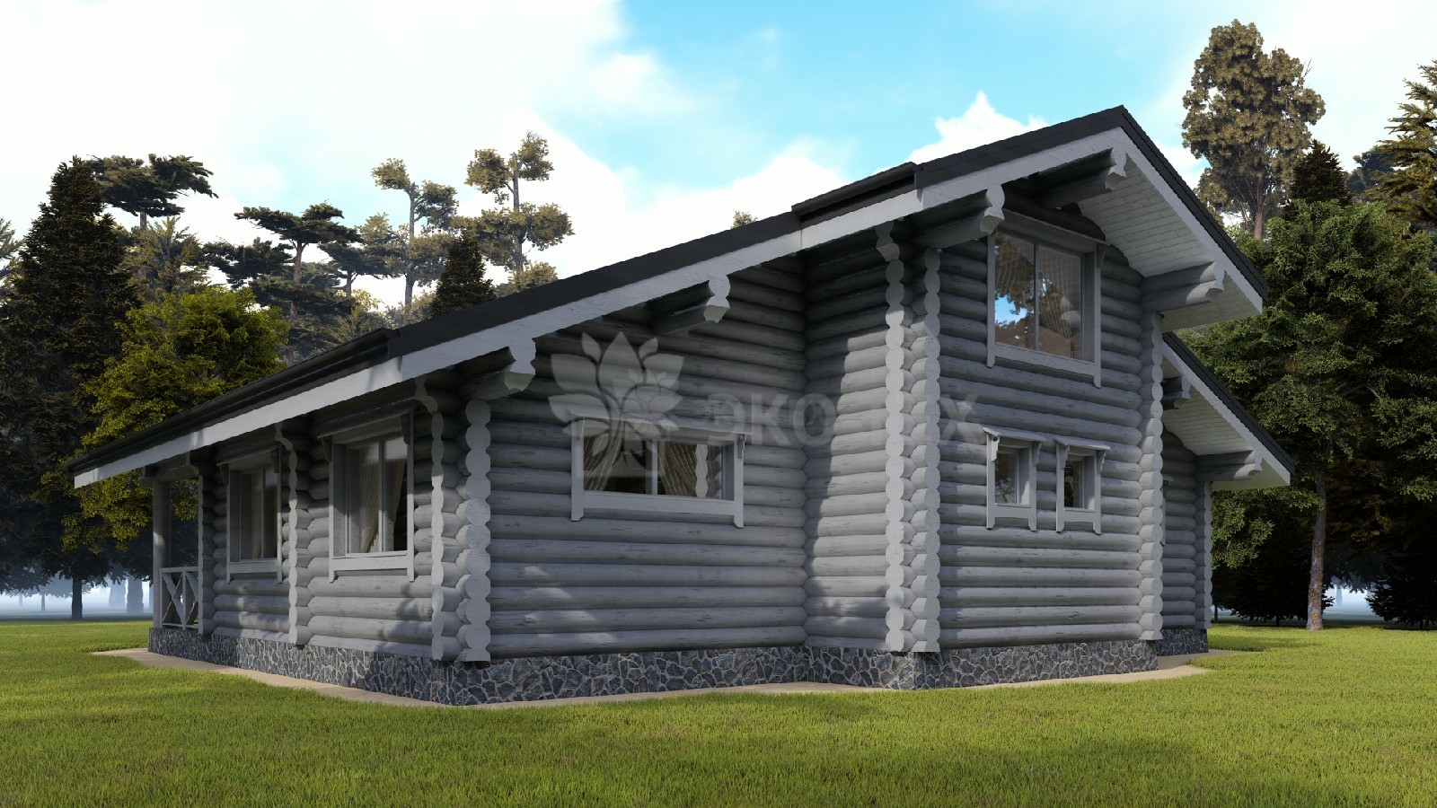 Двухэтажный дом со вторым светом, материал оцилиндрованное бревно